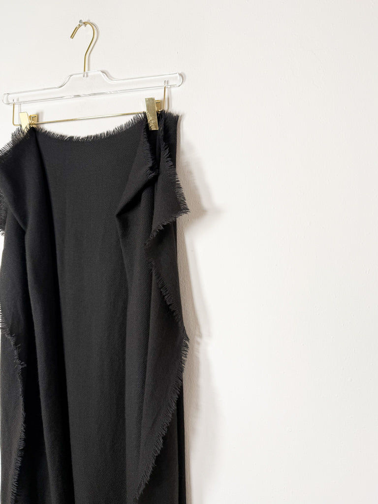 Wrapped in pure cashmere, this oversized scarf delivers understated luxury with its rich dark chocolate hue and deliberately frayed edges. A timeless piece that feels as refined as it looks.