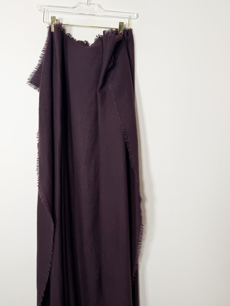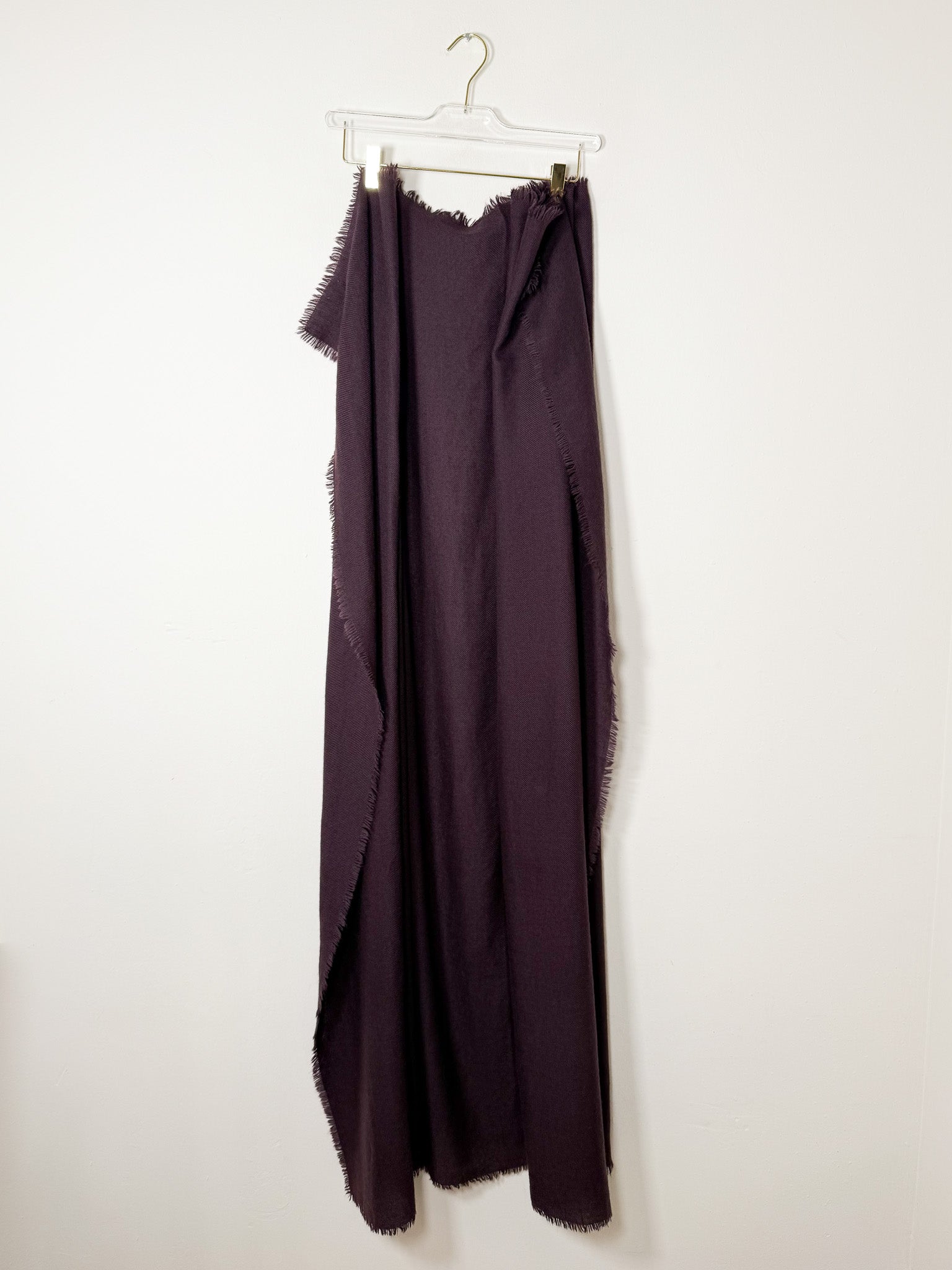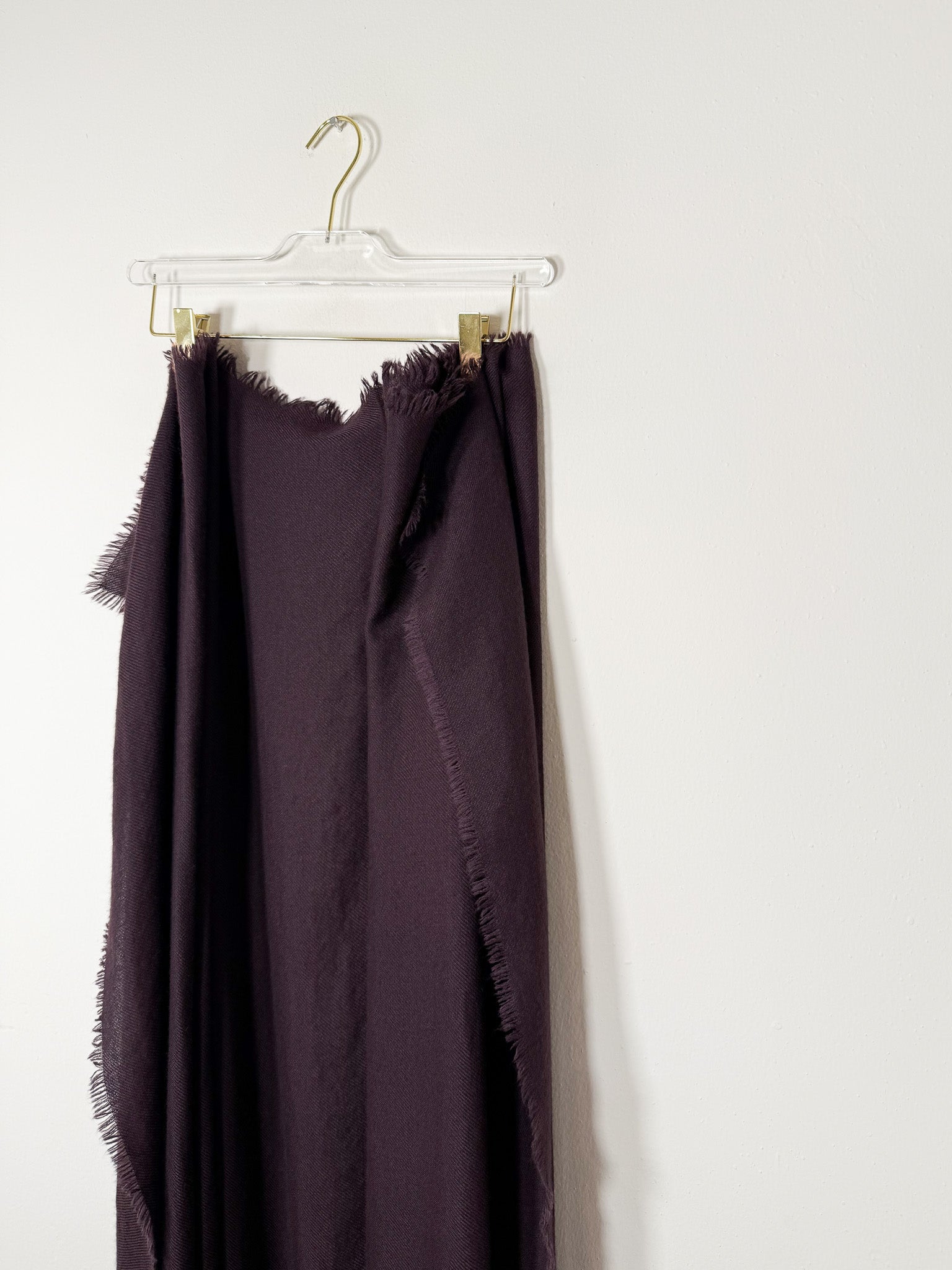 Crafted from pure cashmere, this oversized scarf showcases a rich deep purple hue finished with artfully frayed edges. A luxurious layering piece that brings sophistication and warmth to any ensemble.