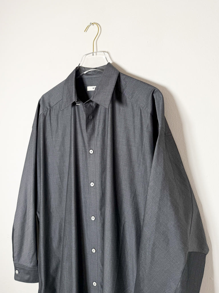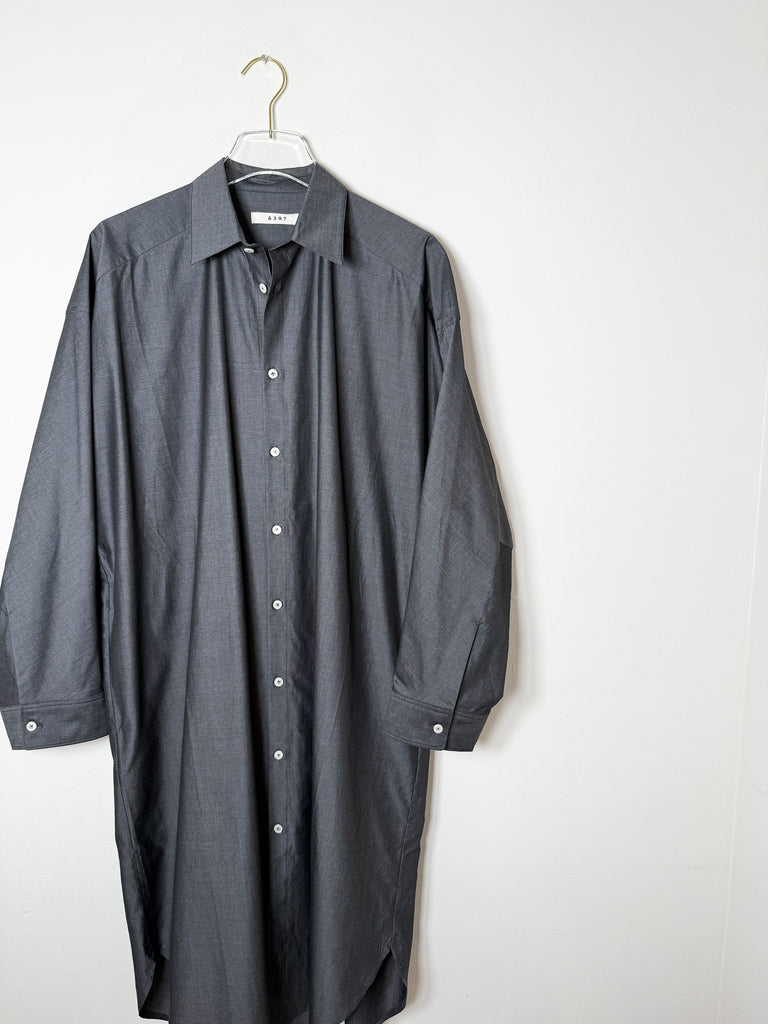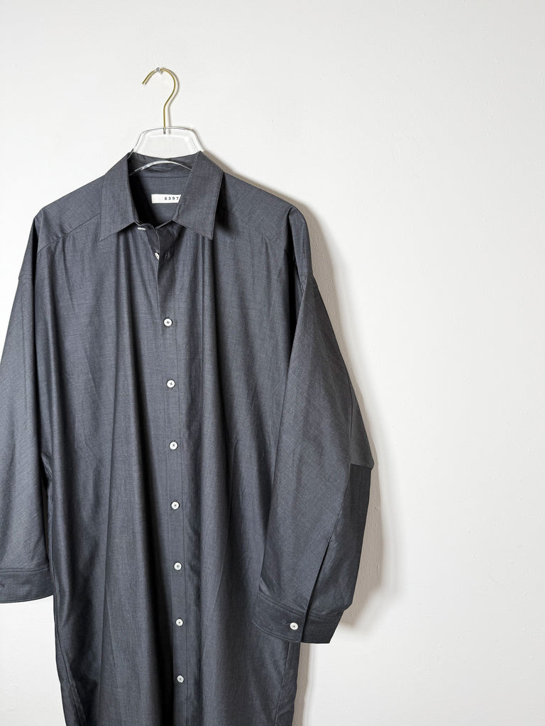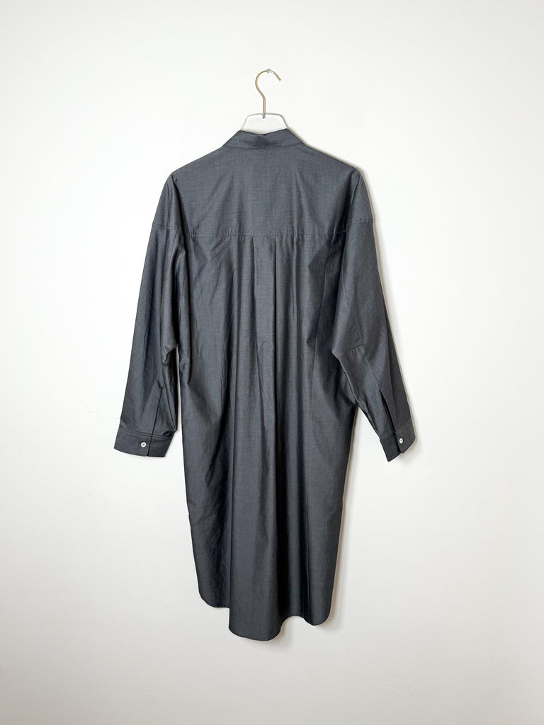 This button-down shirtdress features a relaxed silhouette and a classic collar. It has roomy, oversized sleeves and is crafted from soft, smooth cotton. The length falls to mid-calf.