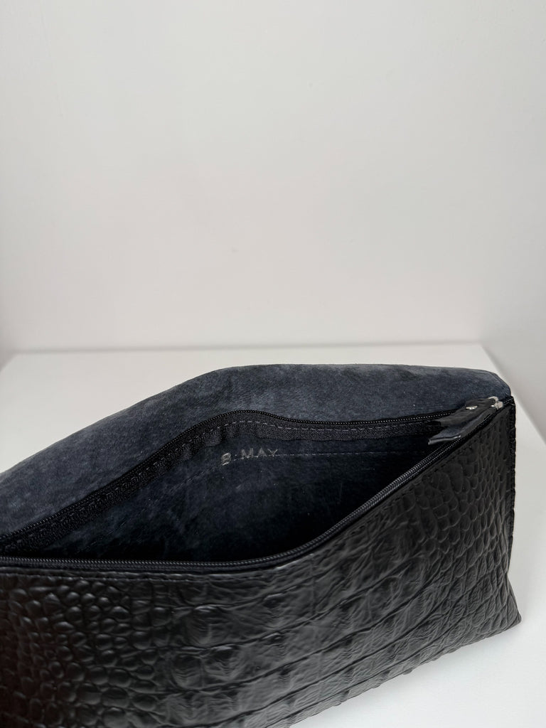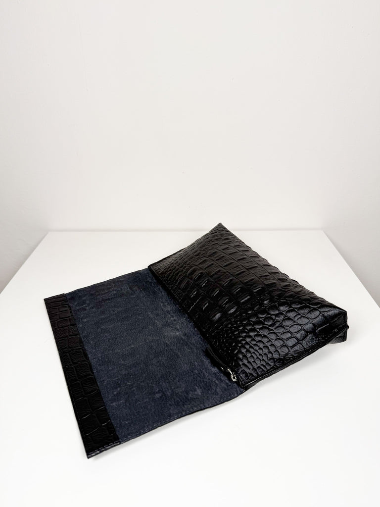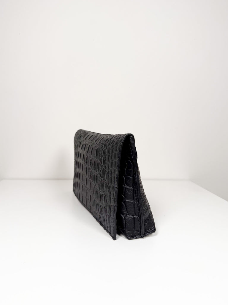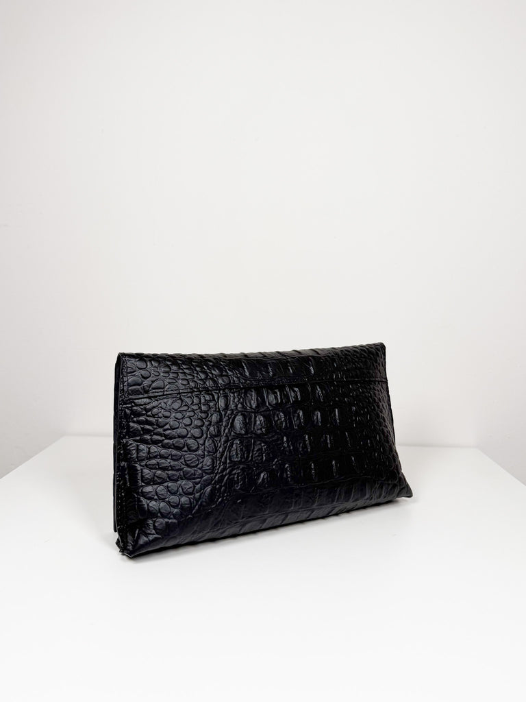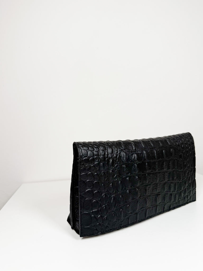 B. May - Foldover Clutch - Matte Black Embossed Croc