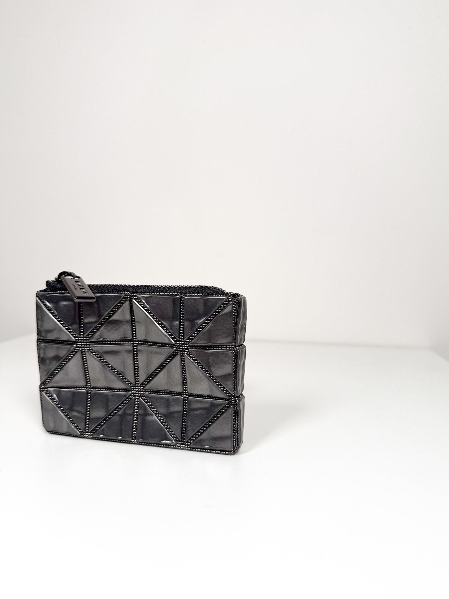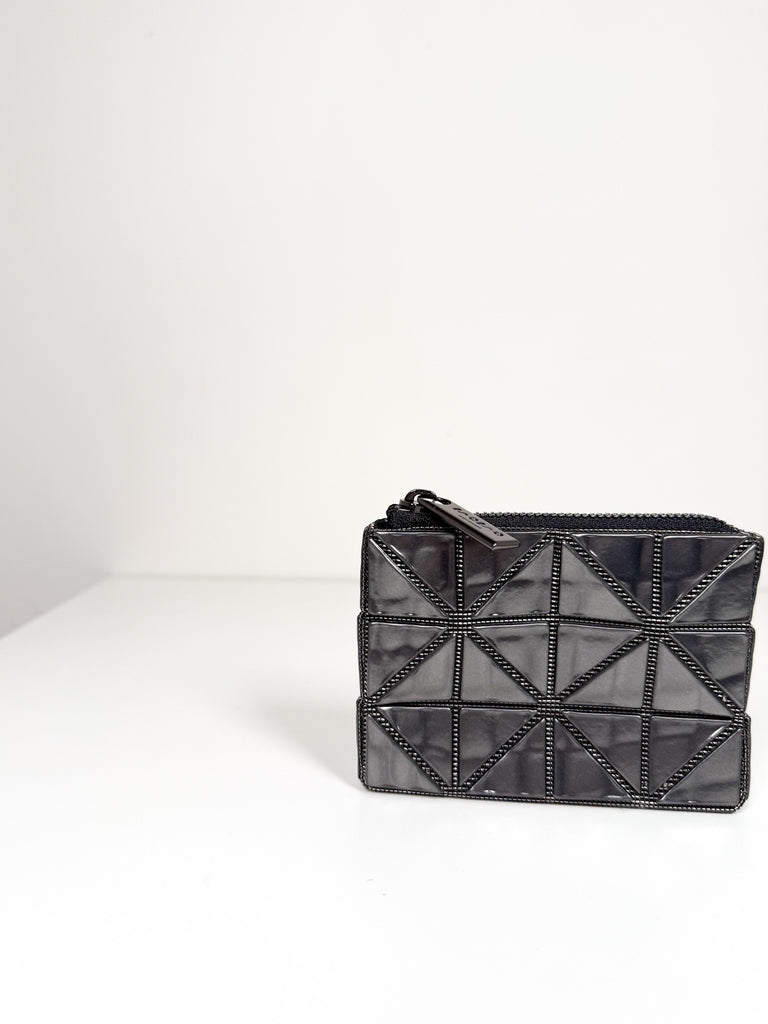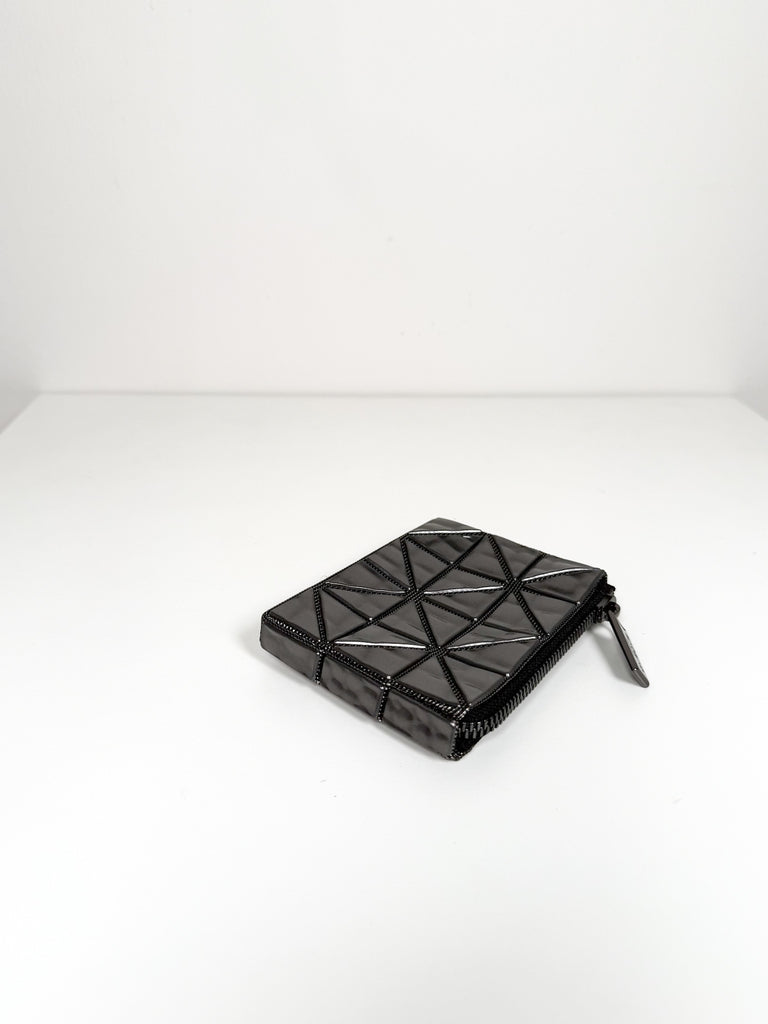 Compact zip wallet with Bao Bao's iconic geometric triangle design.