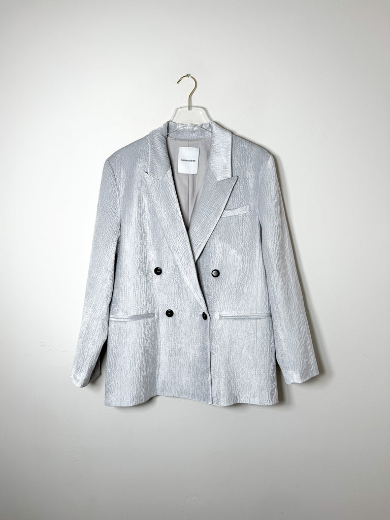 Pomandère - Hammered Velvet Blazer - Pearl Grey