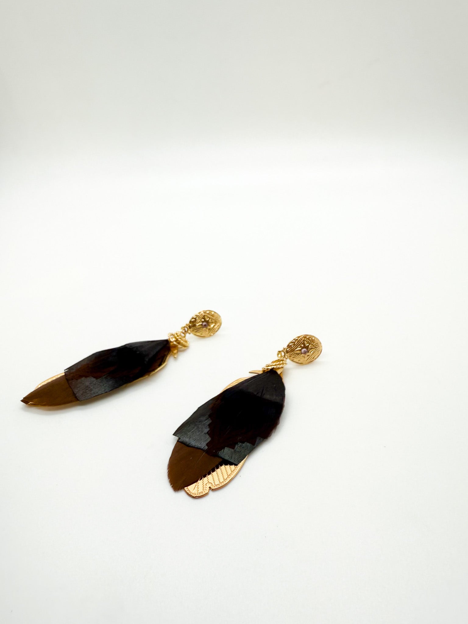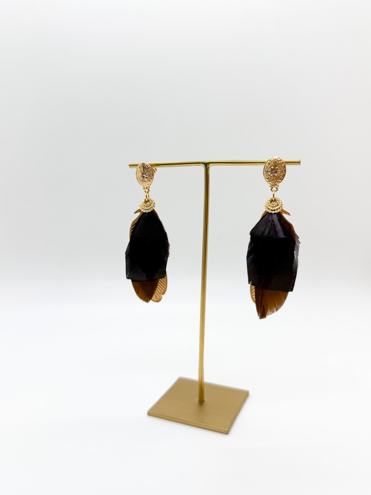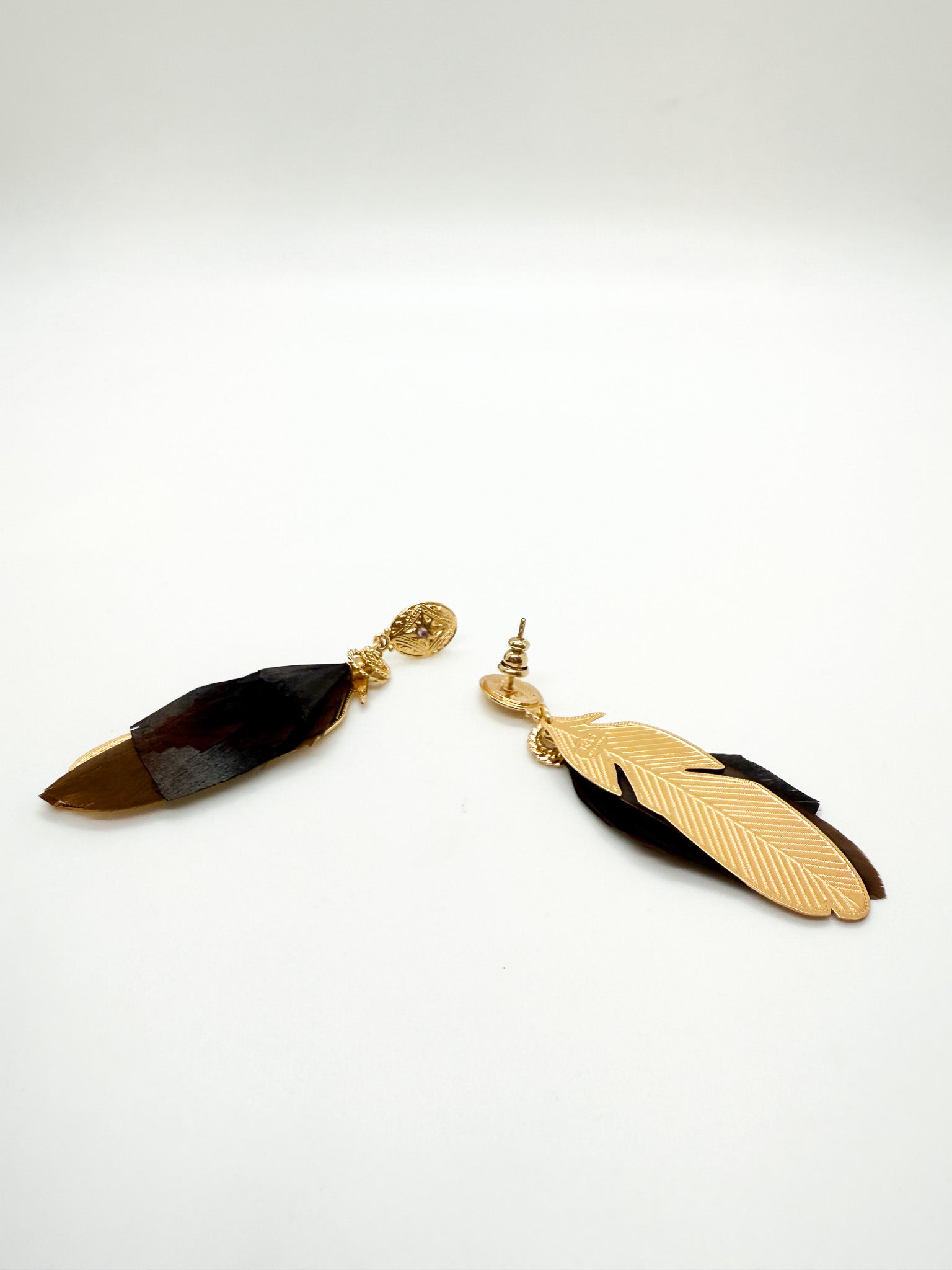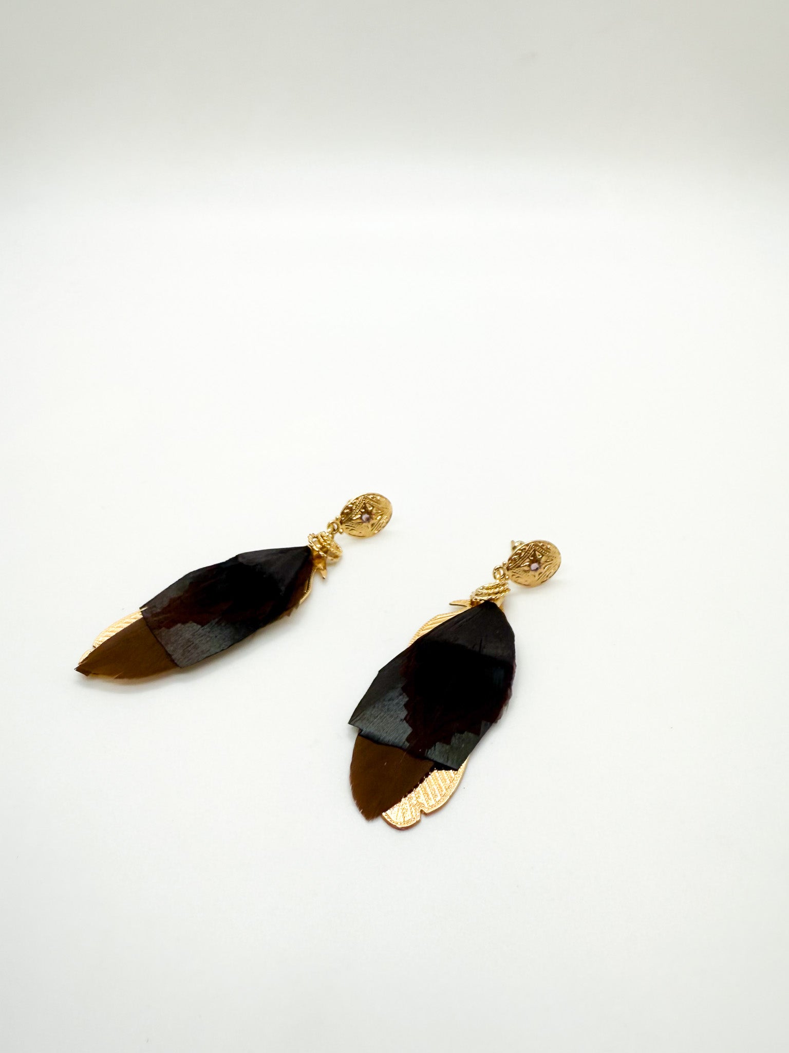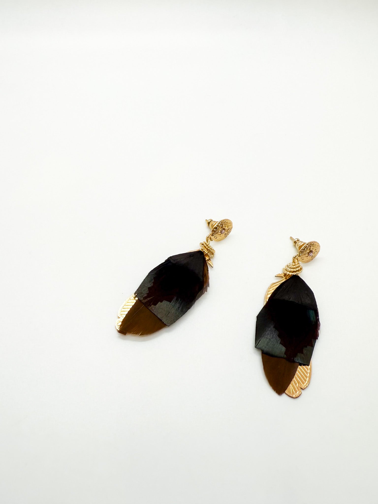 Drop earrings pairing genuine tinted stones with delicate gold-plated feather accents for refined, minimalist style.