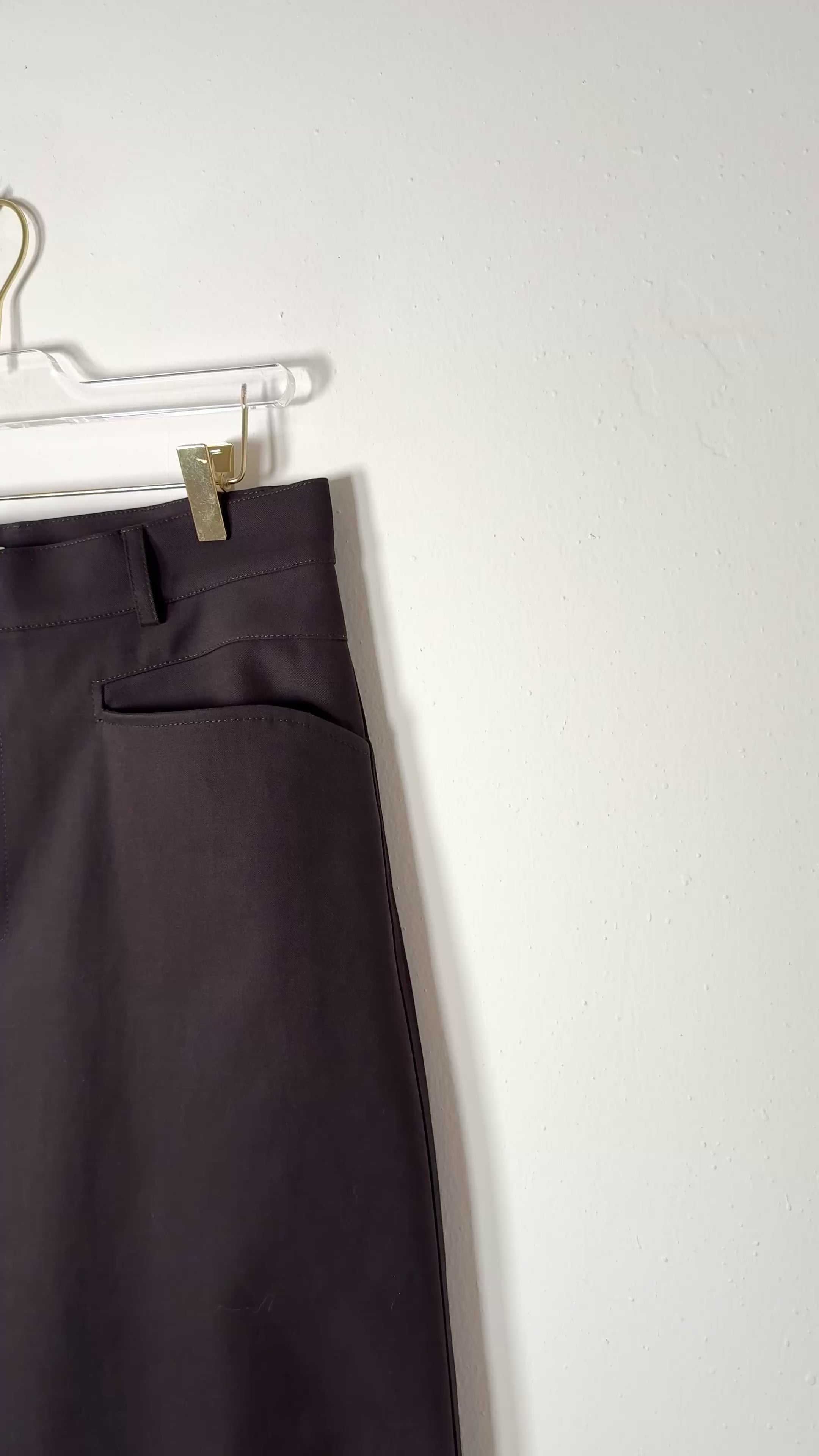 These mid-rise trousers feature a wide-leg design and front pockets, crafted from smooth cotton. A timeless addition to any closet, presented in a deep chocolate shade.