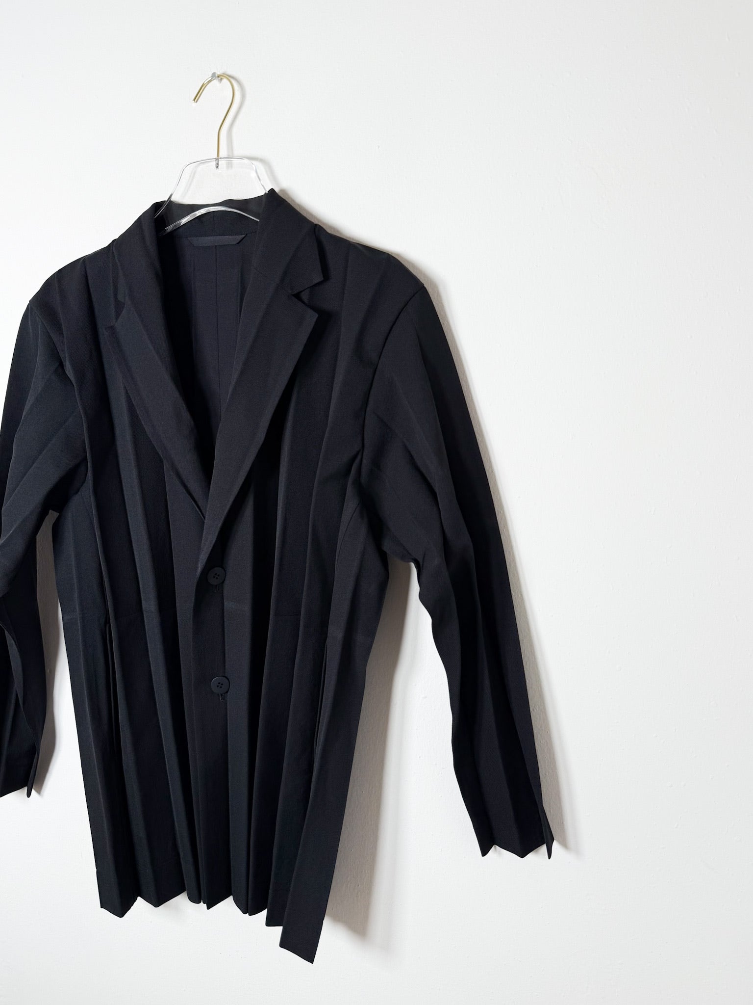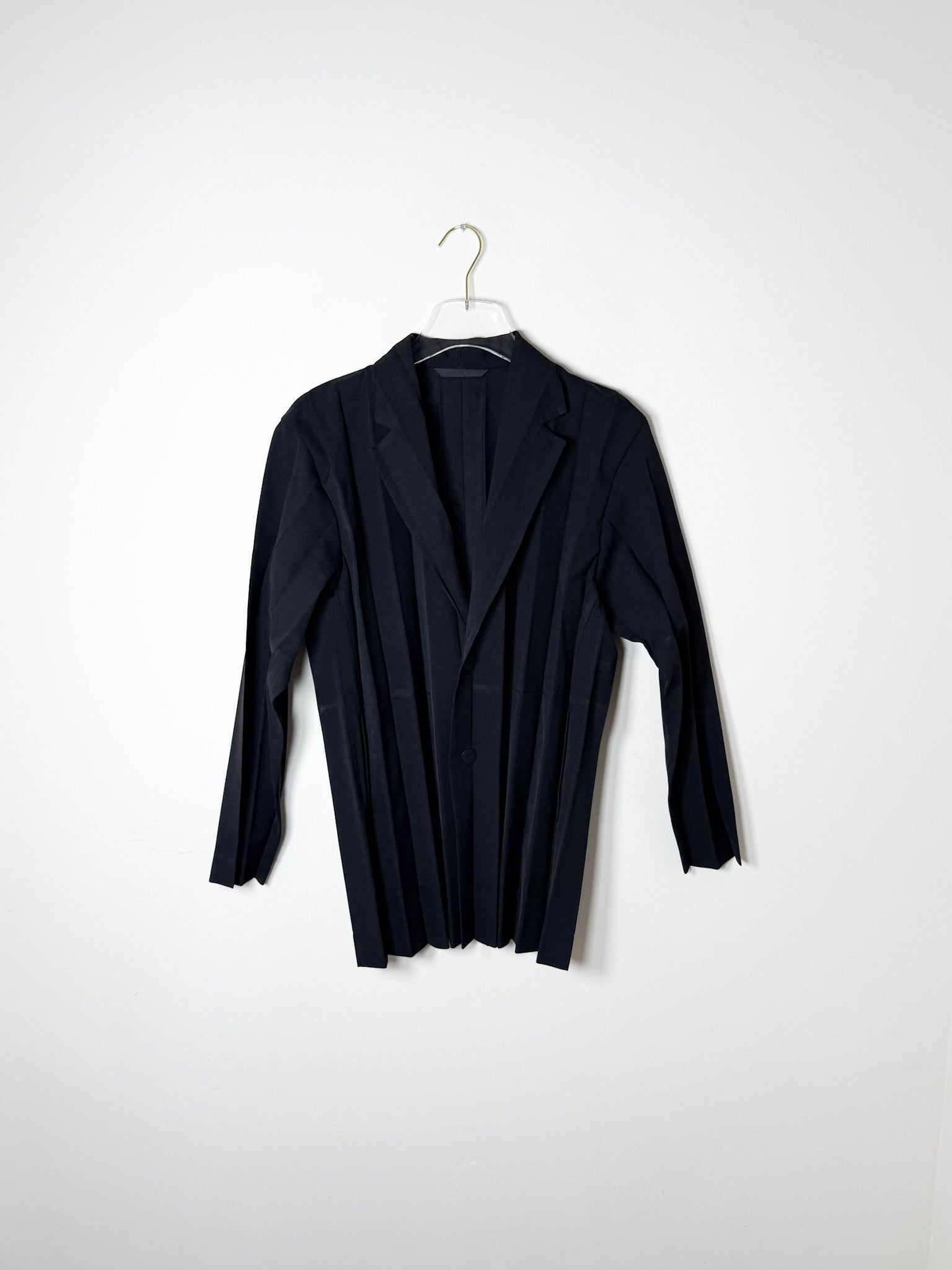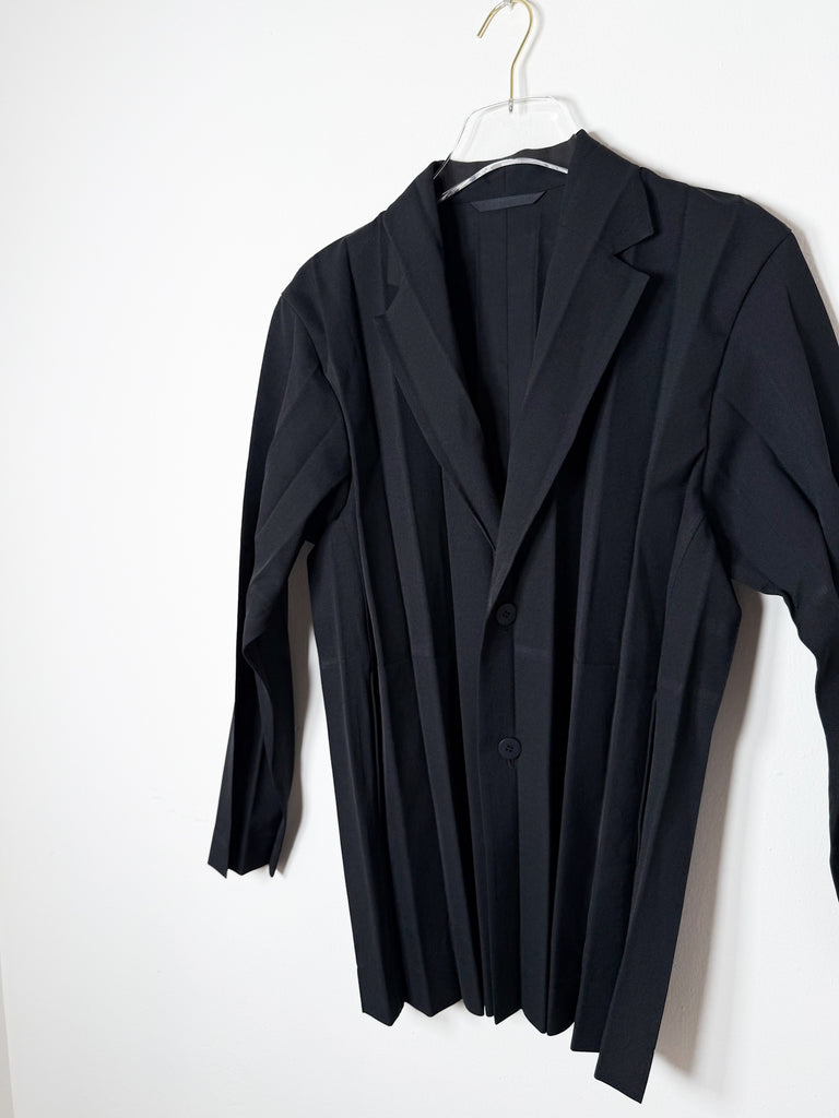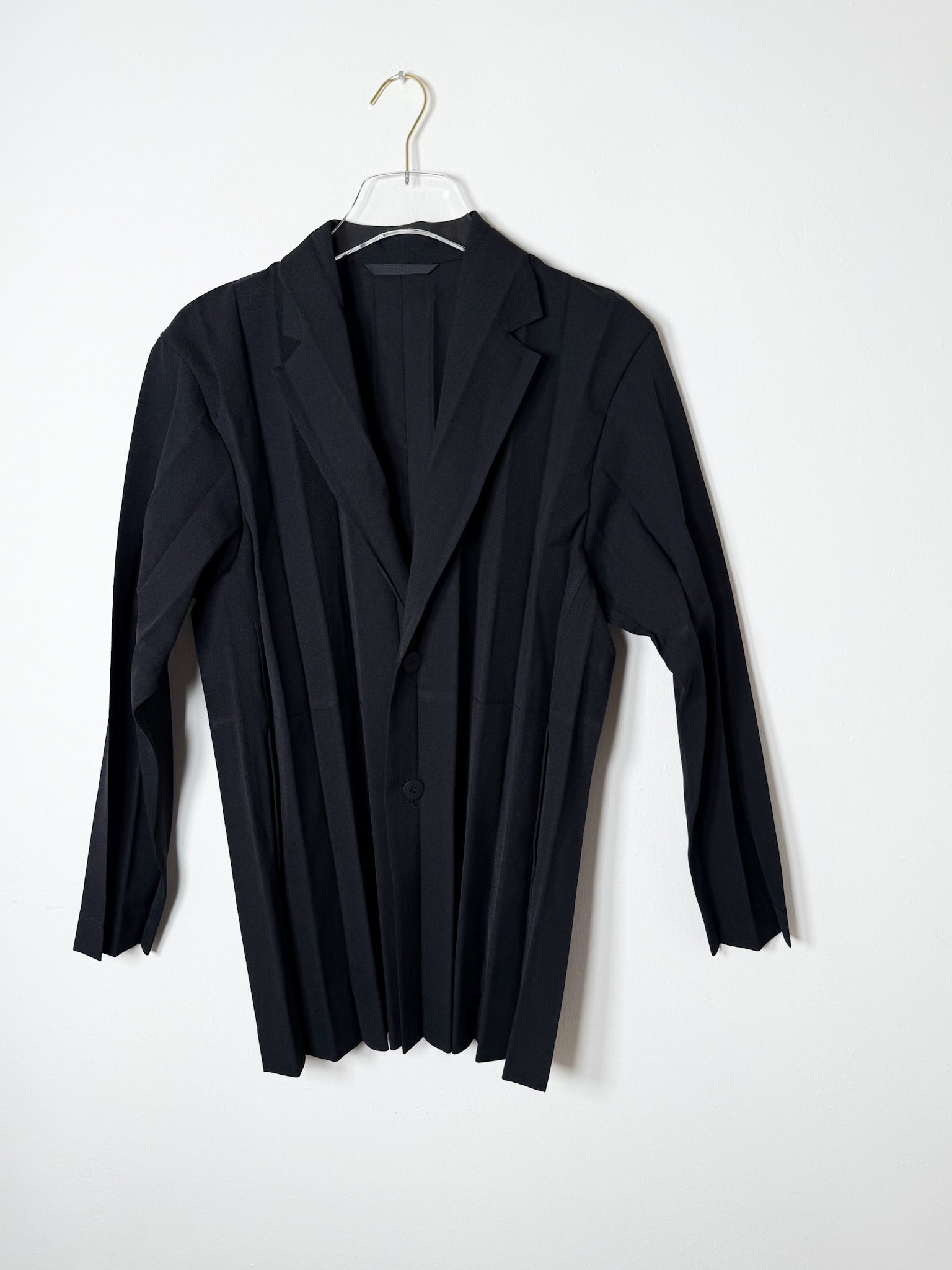 A sculptural blazer defined by Issey Miyake's signature pleating technique. The structured silhouette works as a standalone piece or pairs seamlessly with its matching ensemble.