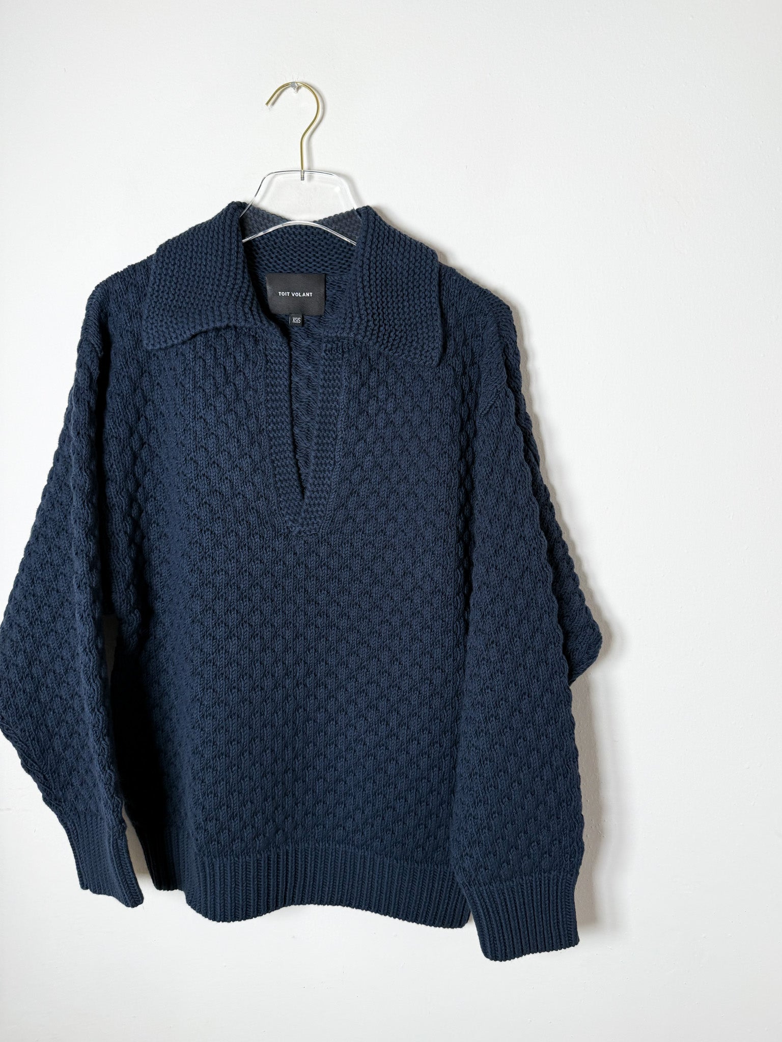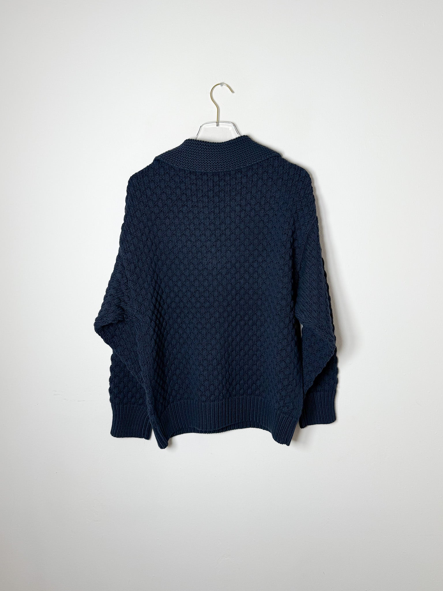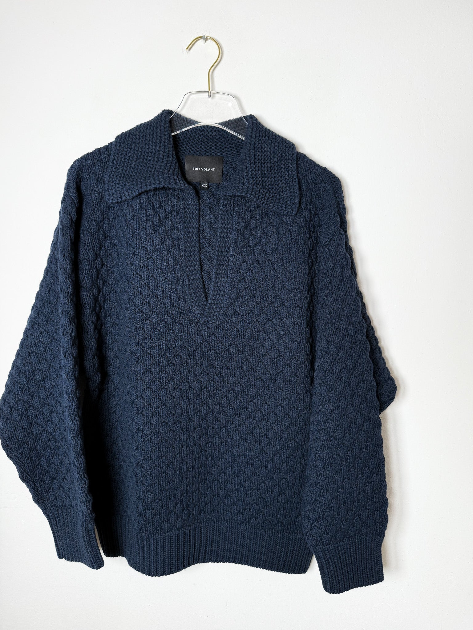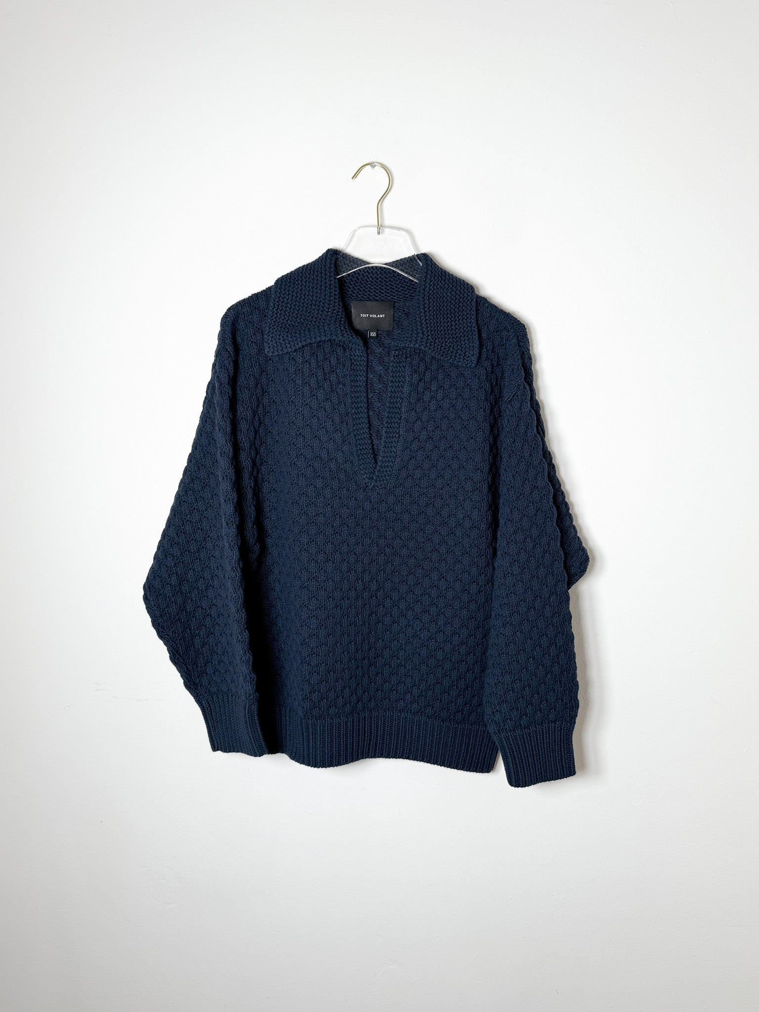Relaxed fit polo sweater made of a heavy cotton knit.