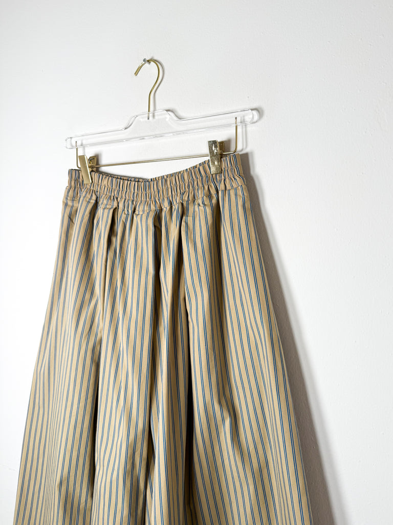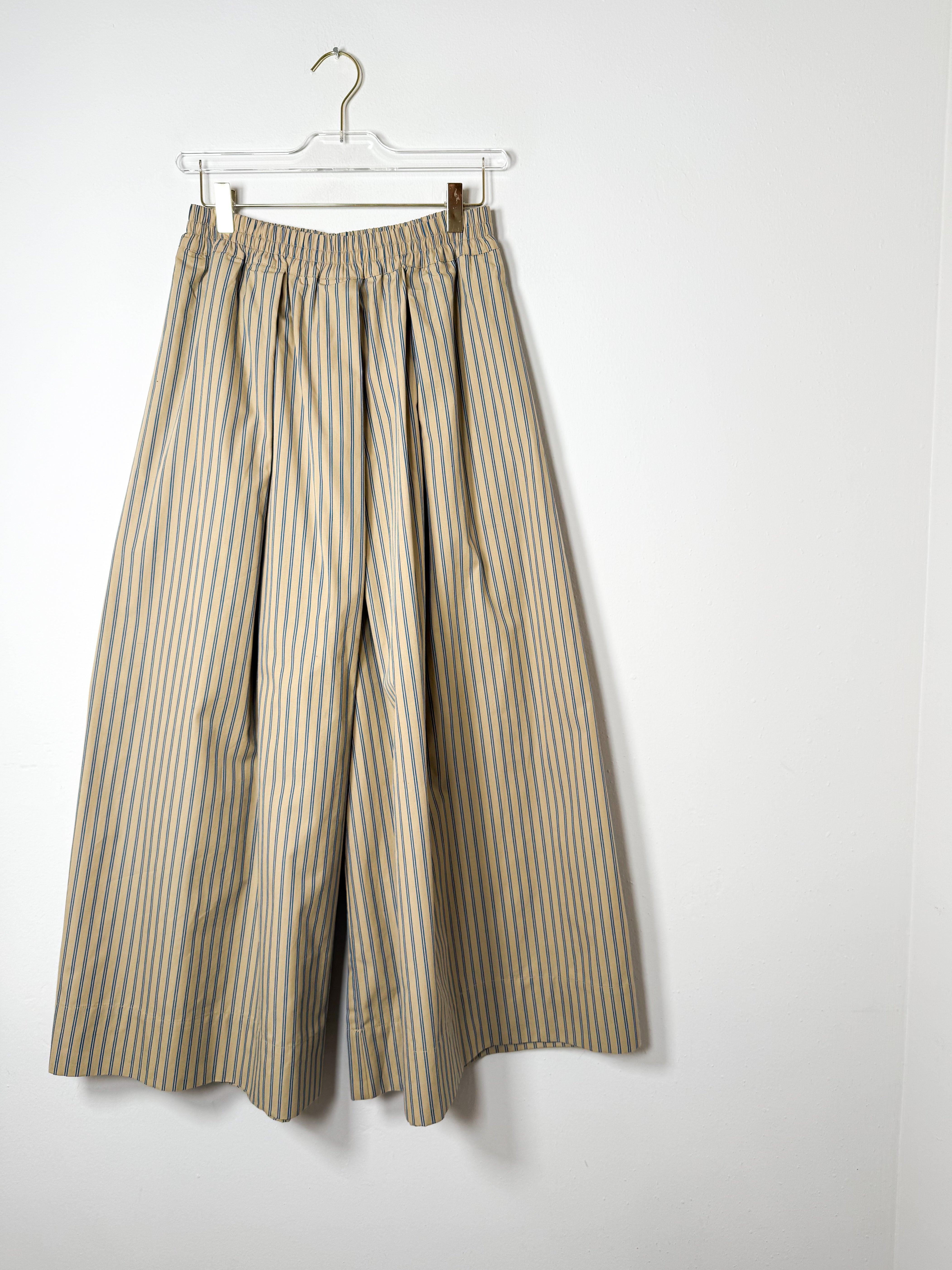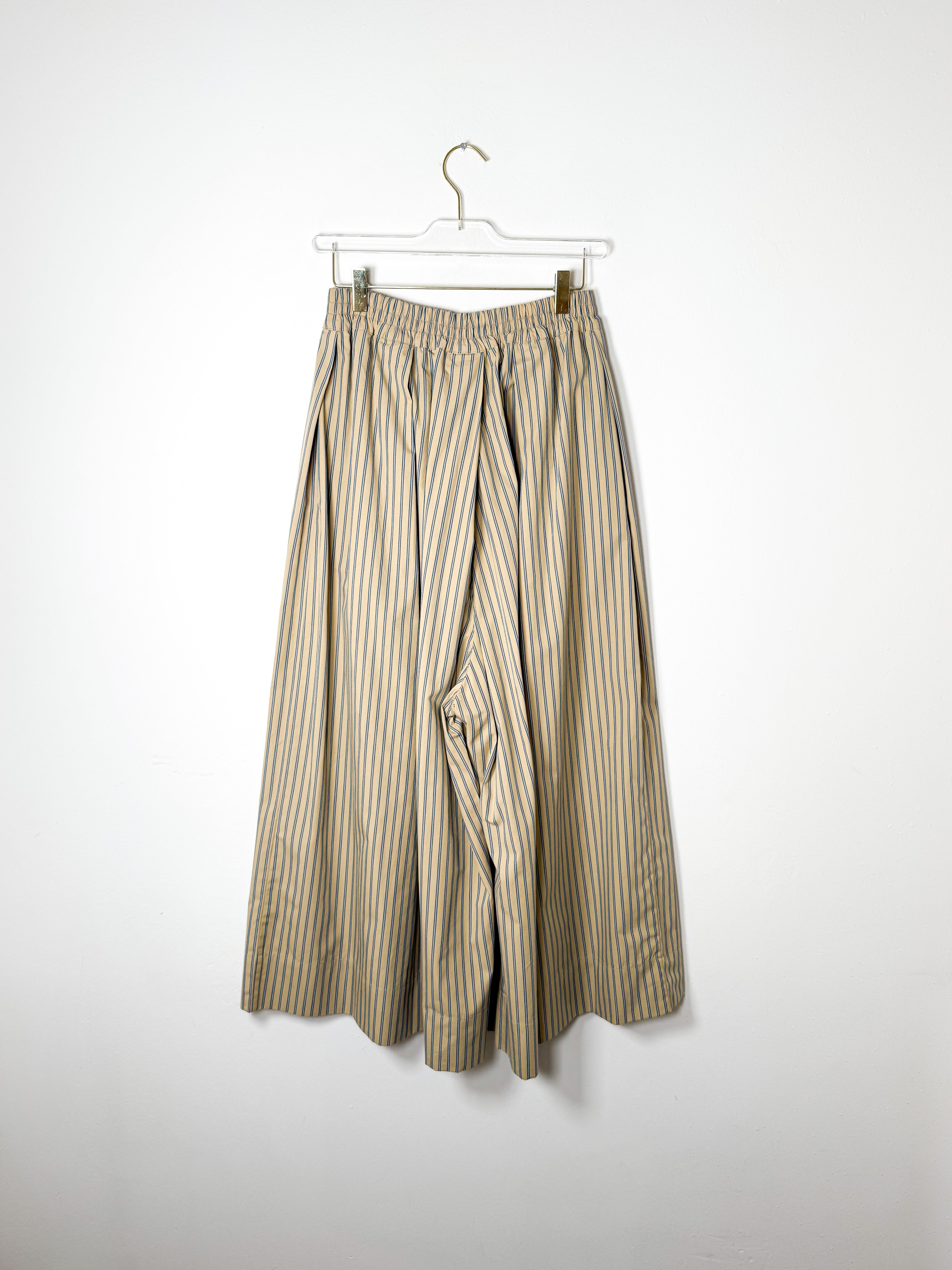 A relaxed wide-leg silhouette with cropped proportions and a comfortable elastic waistband. Functional side pockets and subtle pleating at the waist create an effortless, skirt-like drape. This style runs big, we recommend sizing down.