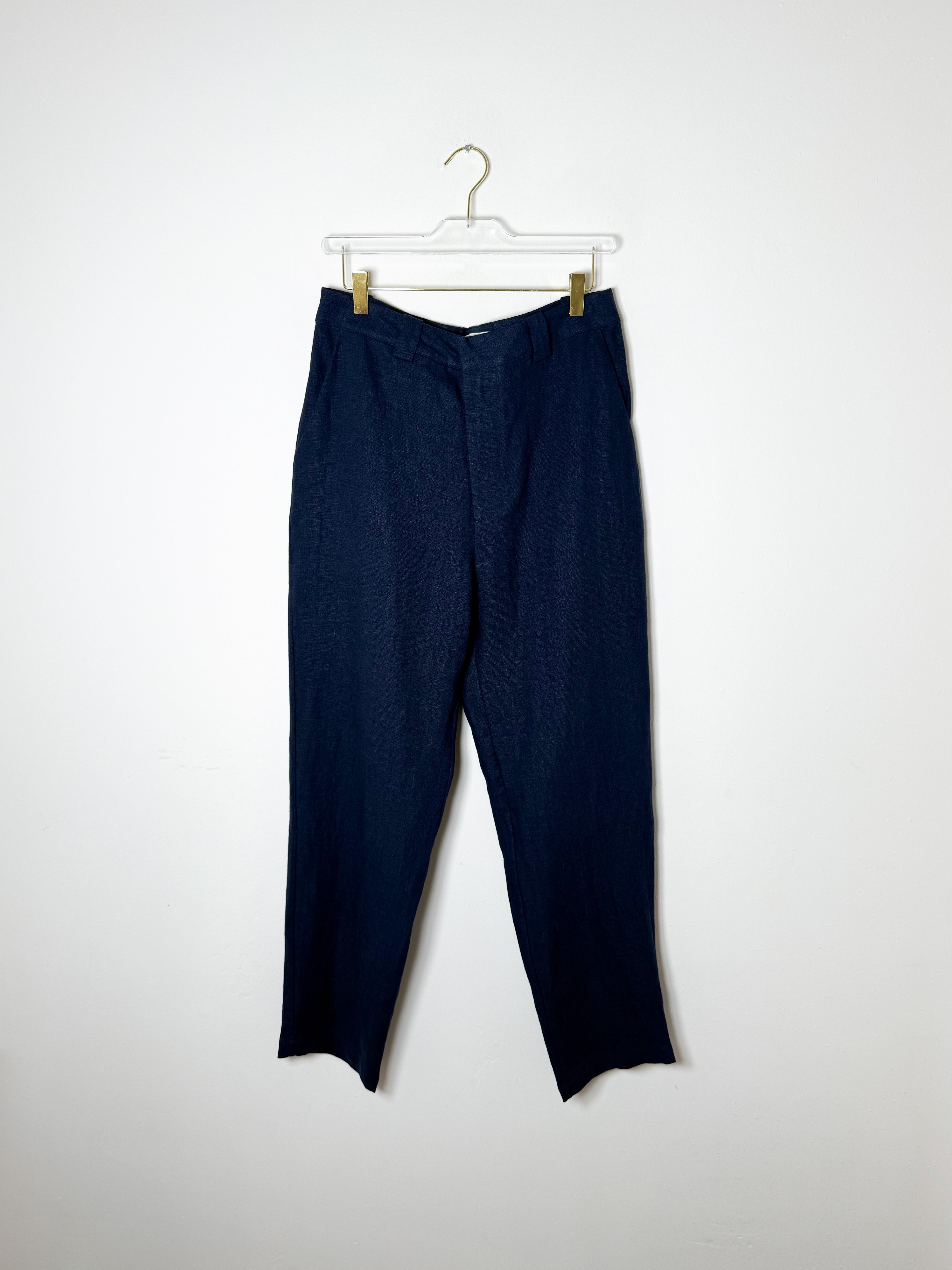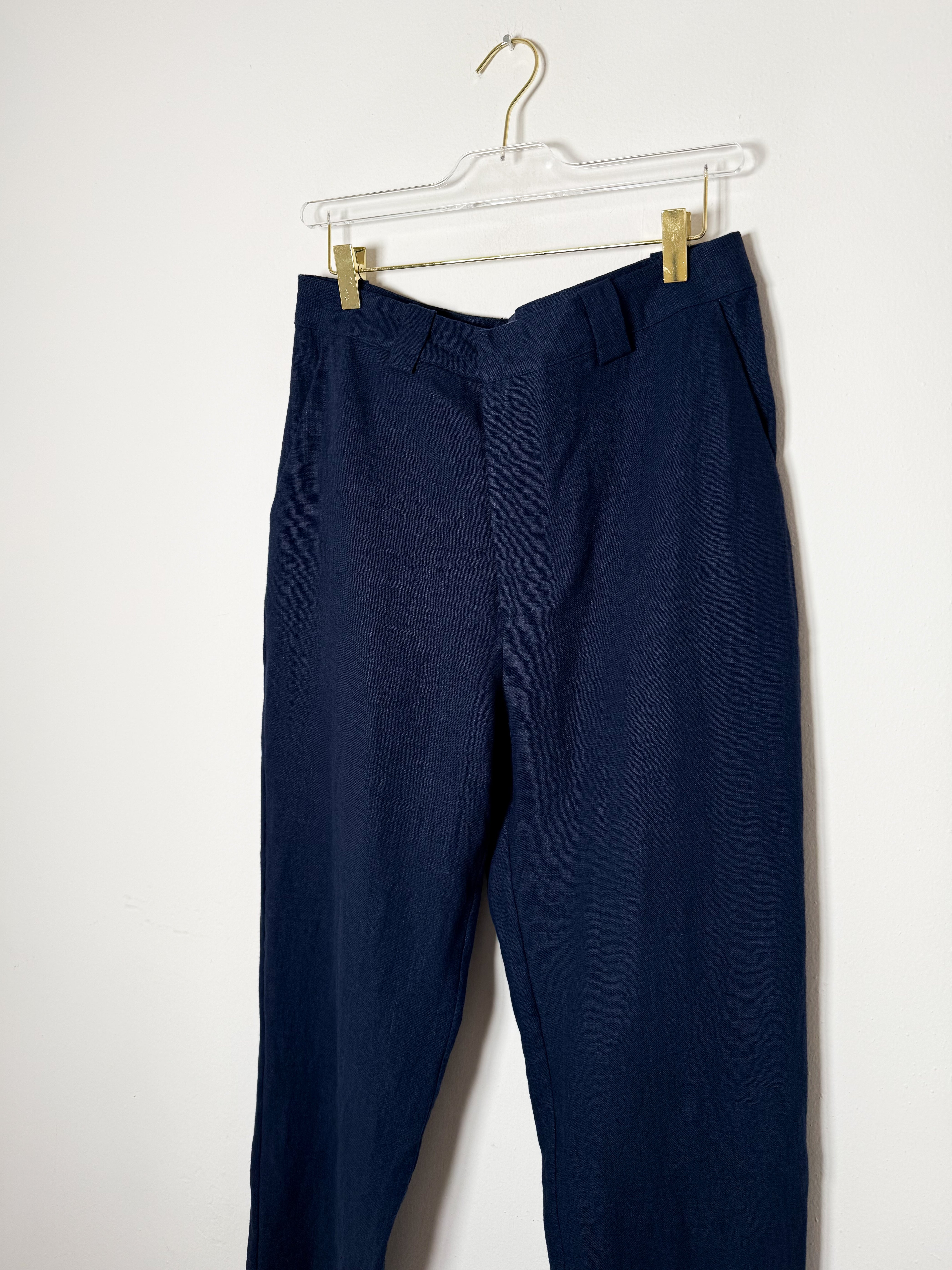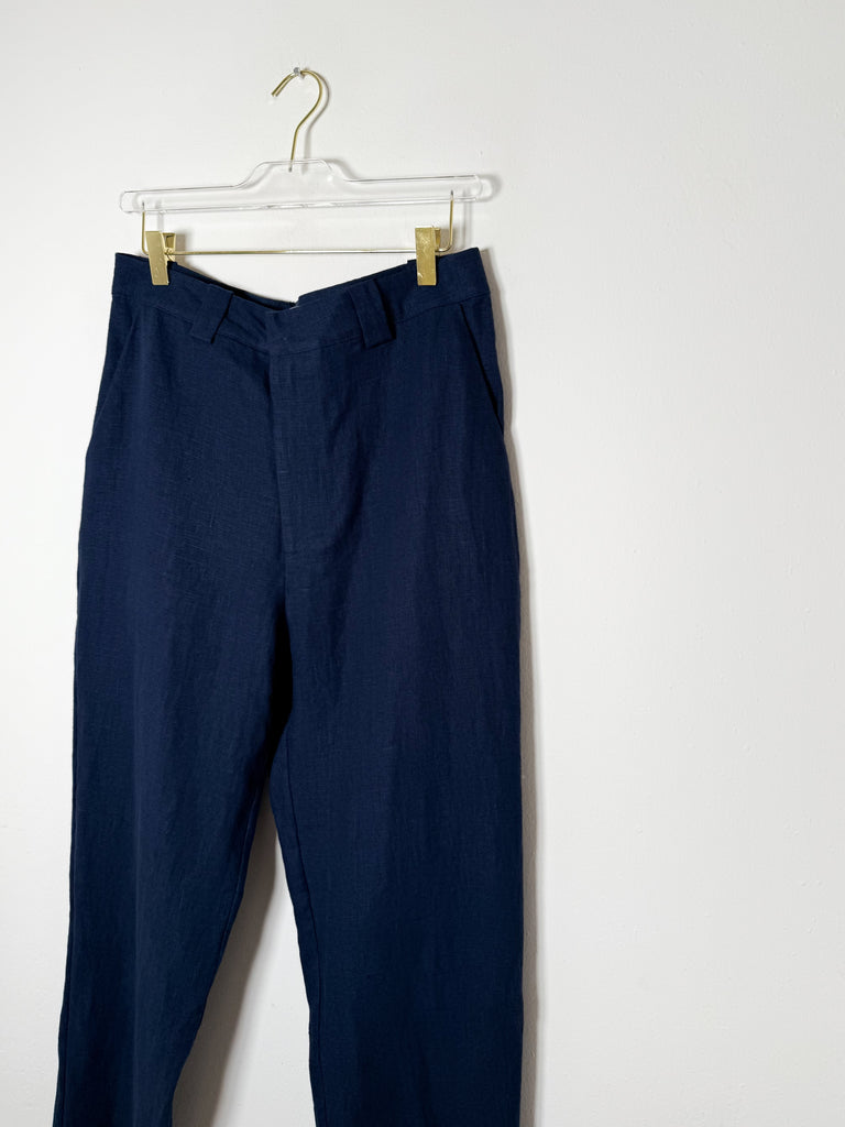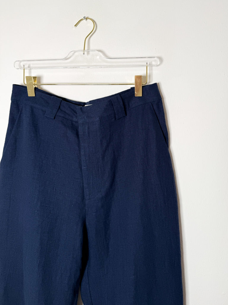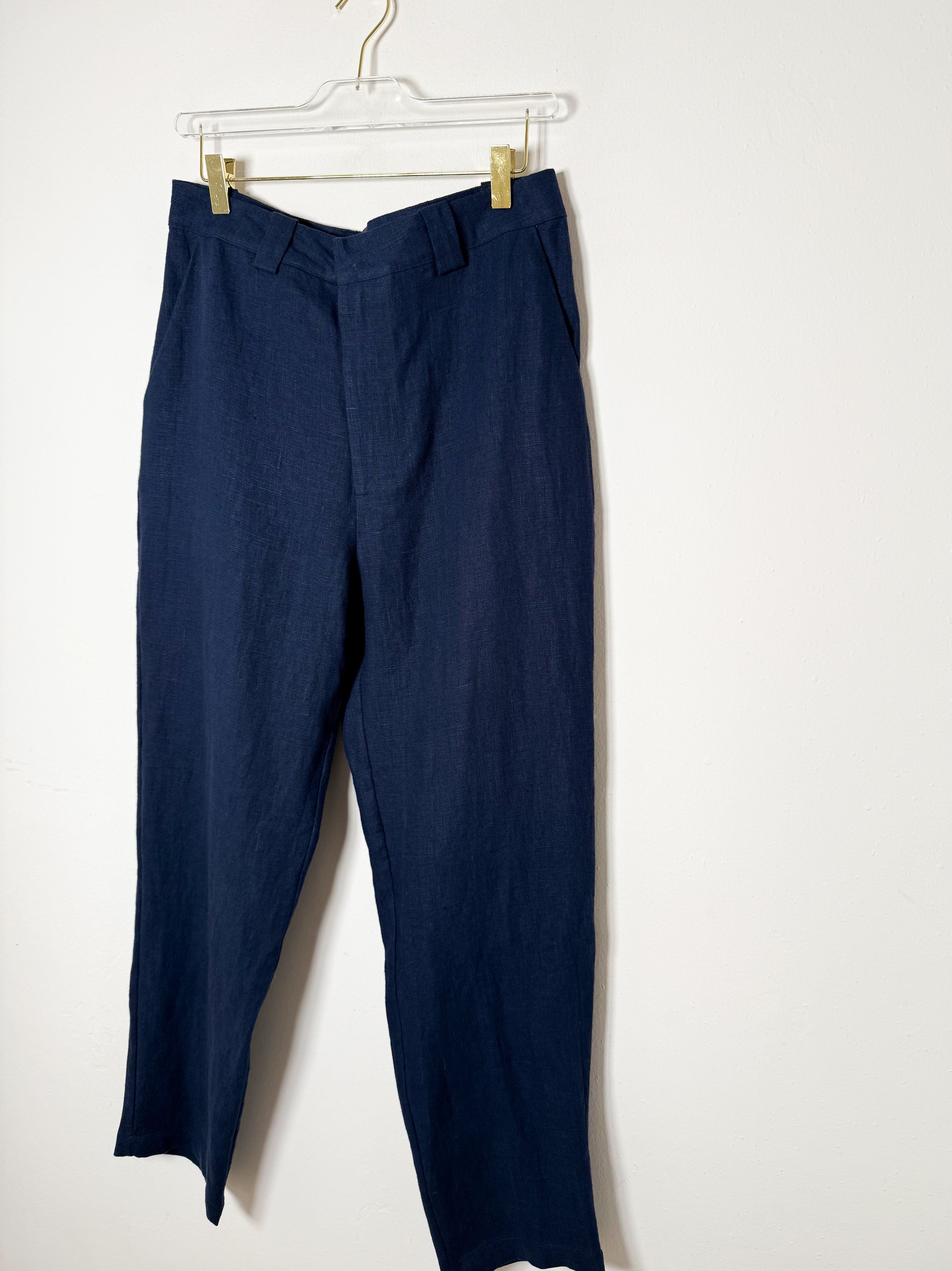 These men's linen pants feature a timeless tapered fit and come in a rich dark navy shade, perfect for elevating your everyday wardrobe.