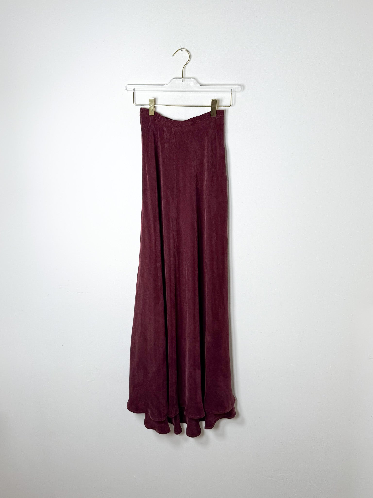 A beautifully simple maxi skirt with an elastic waistband and side zipper for easy dressing. The flowing fabric drapes softly, creating an elegant silhouette that feels as good as it looks.
