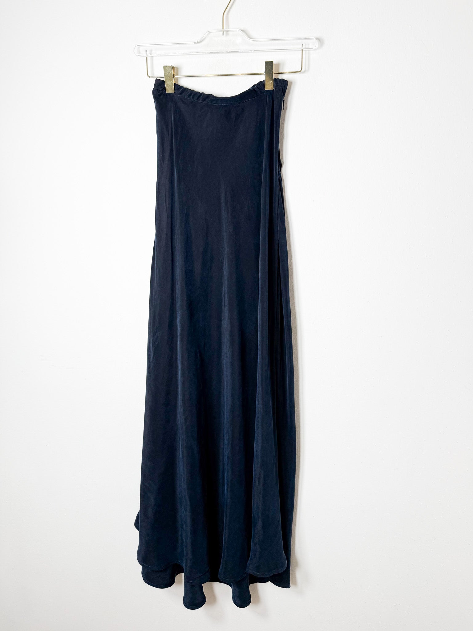 A beautifully simple maxi skirt with an elastic waistband and side zipper for easy dressing. The flowing fabric drapes softly, creating an elegant silhouette that feels as good as it looks.