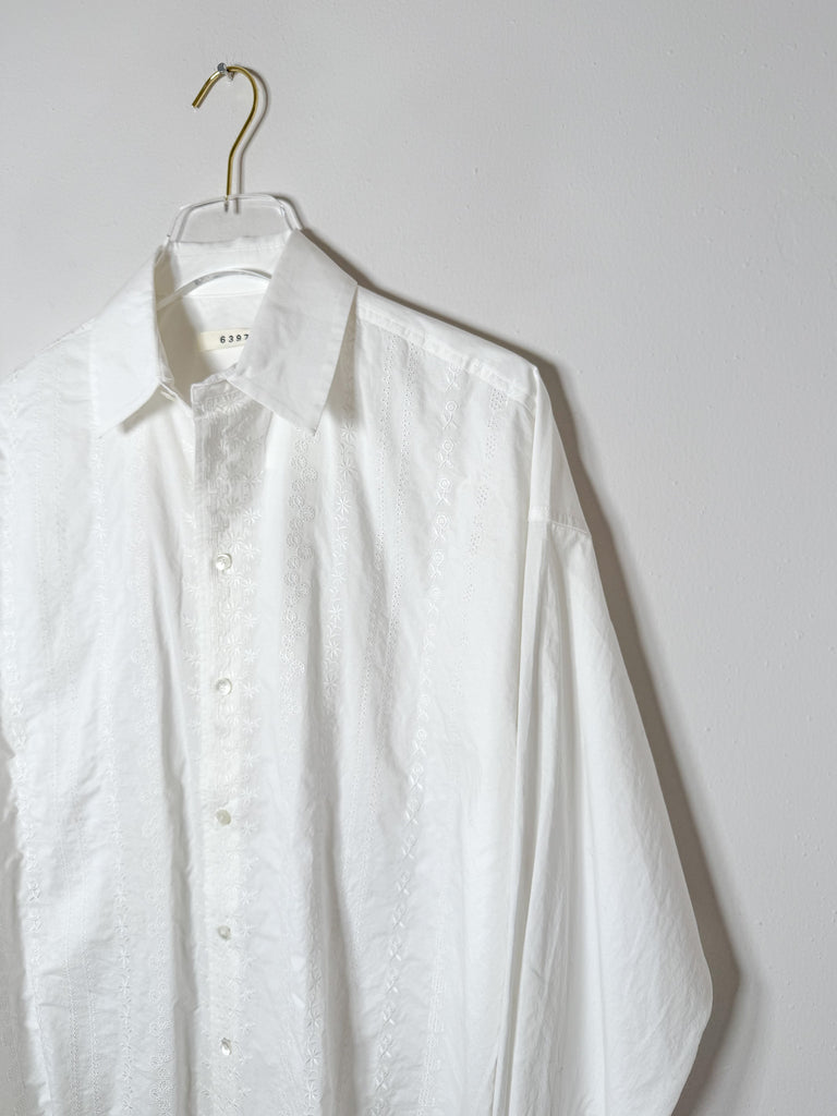 This comfortable button-down blouse features front embroidery, offering a fresh twist on a timeless design.