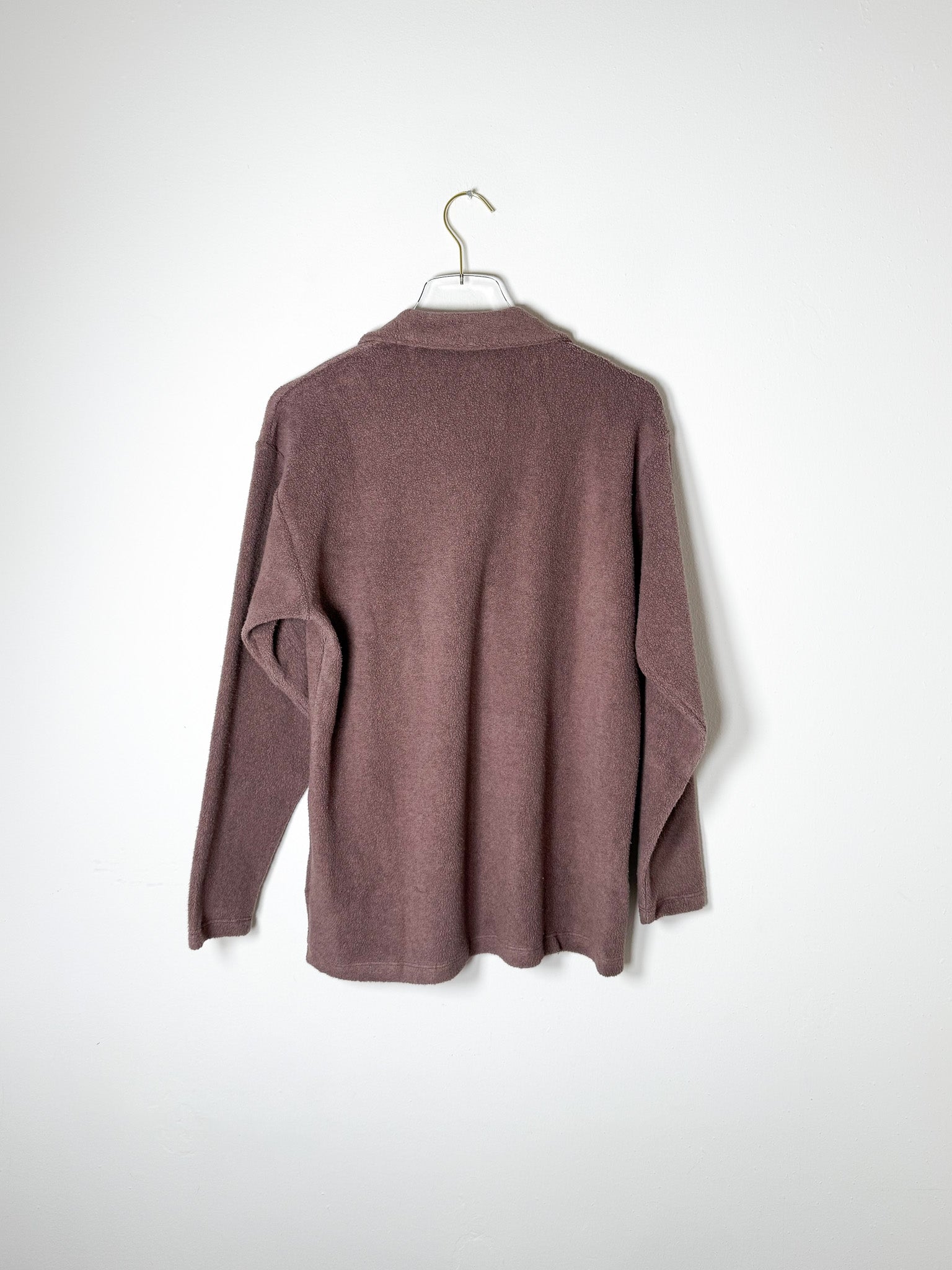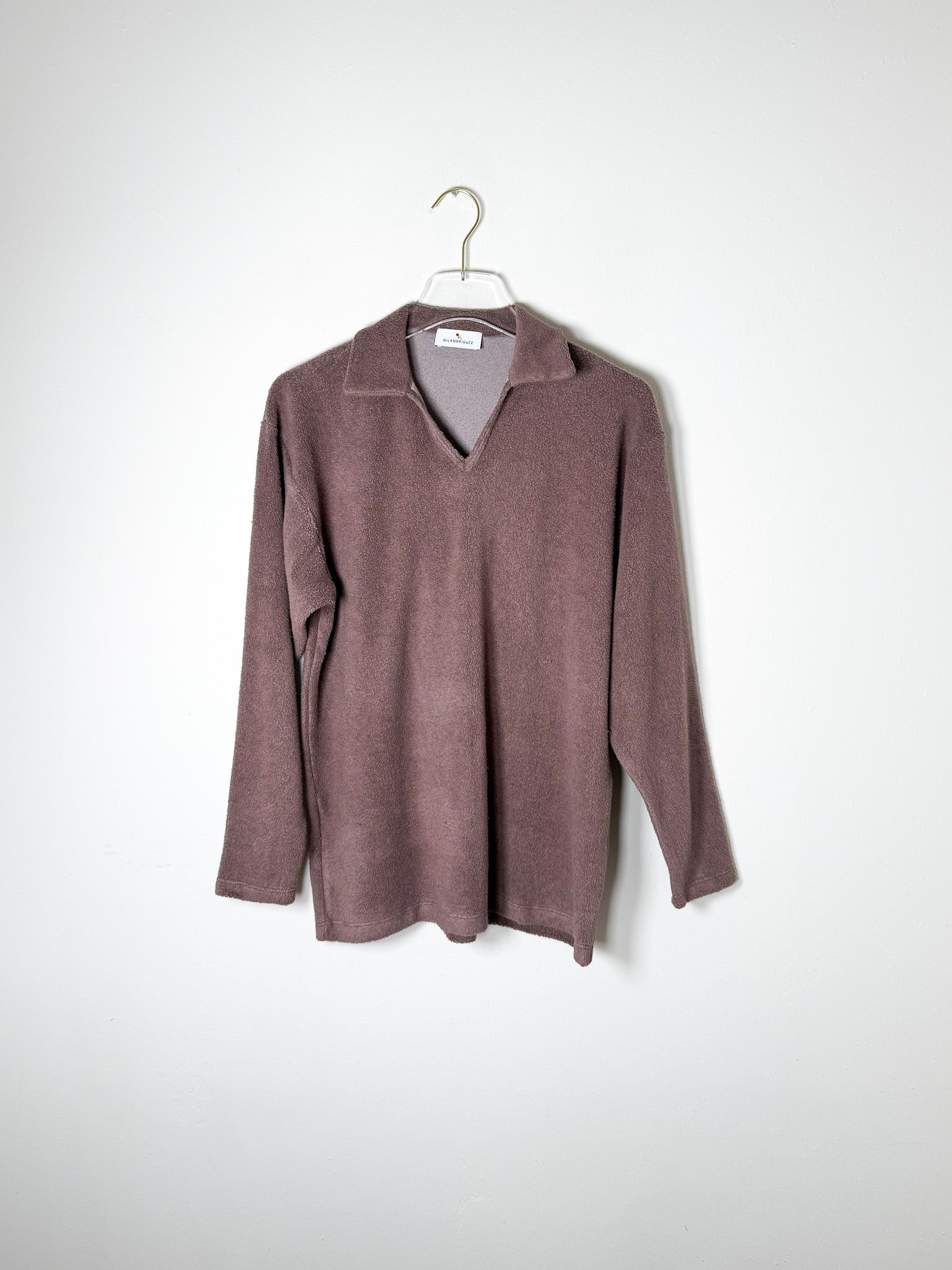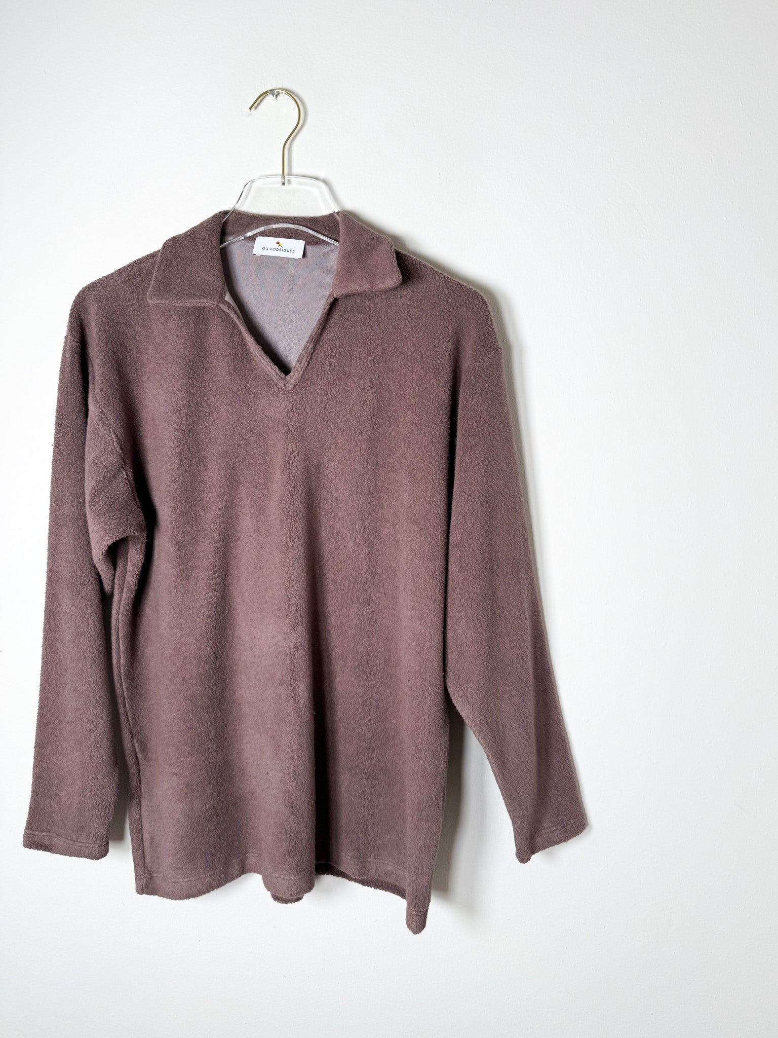 Cozy sherpa long-sleeve with a collared v-neck cut. Effortless comfort for everyday wear.