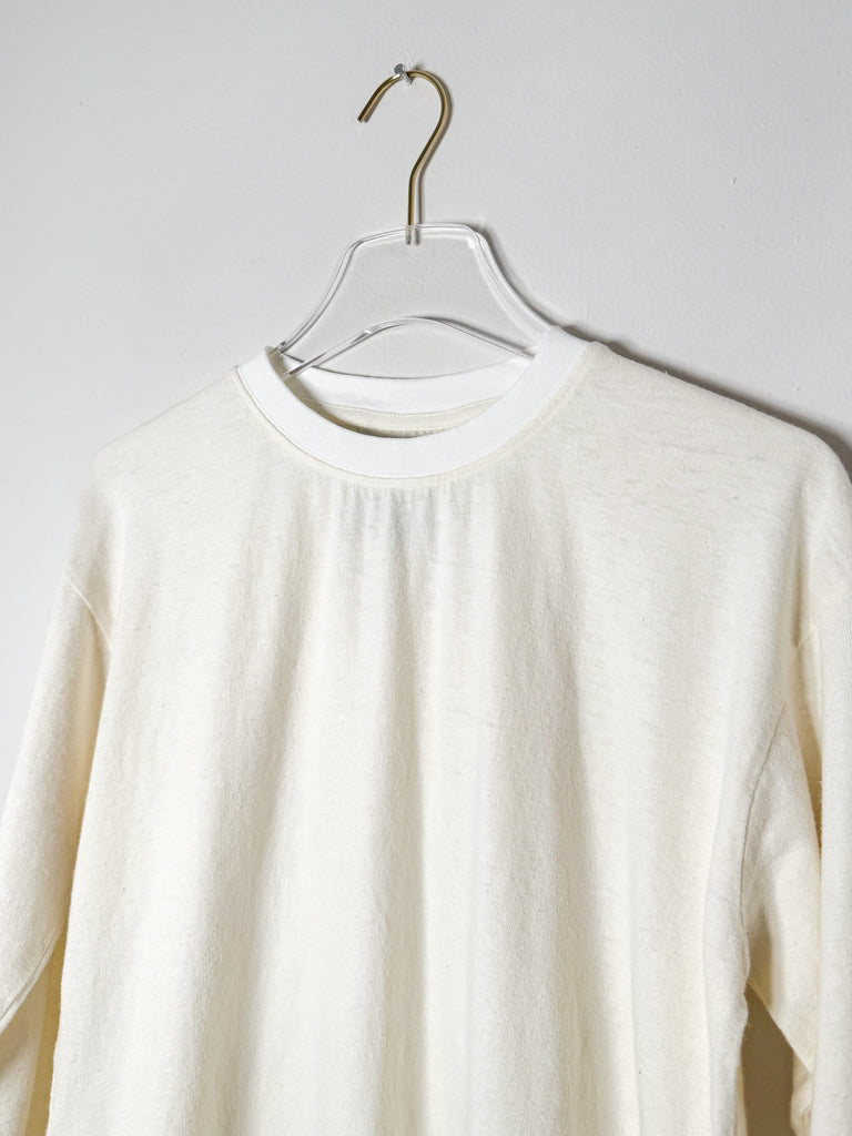 Mid-weight cropped crewneck with long sleeves, crafted in a hemp cotton blend with a relaxed silhouette.