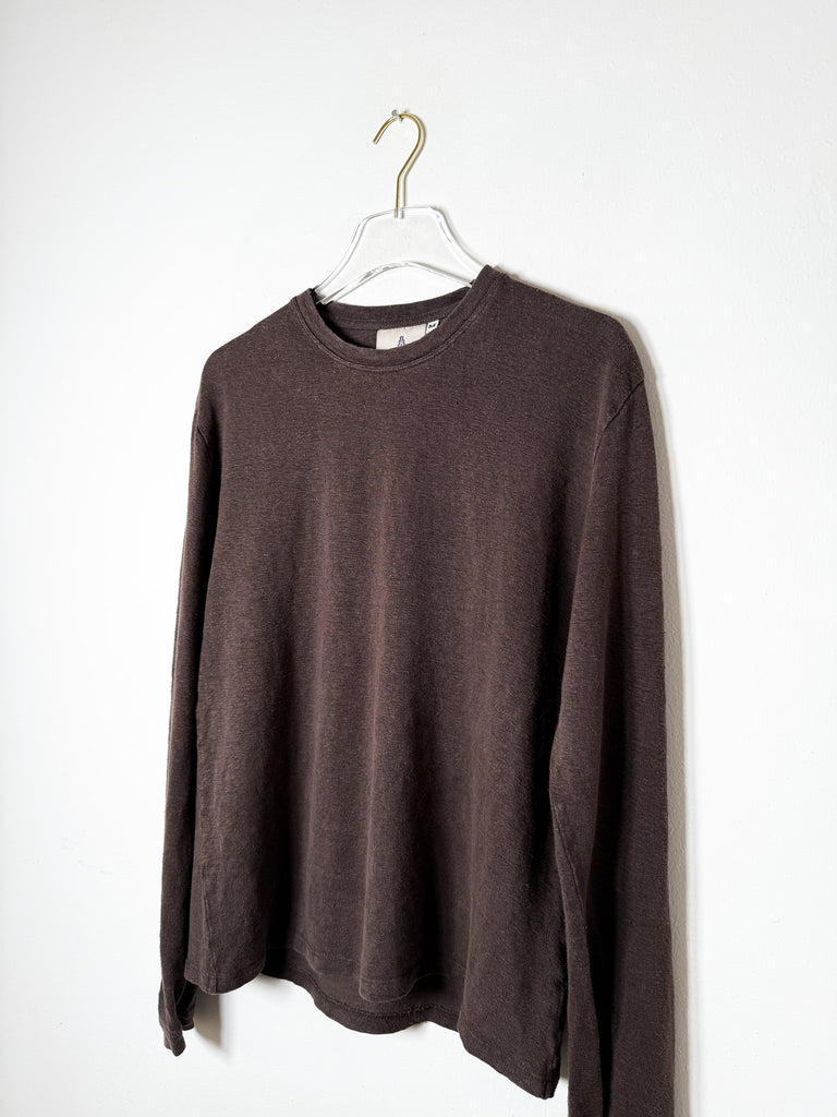 This longsleeve tee is crafted from 100% hemp, featuring a narrow fit through the body and arms with a gently dropped shoulder. The fabric offers a worn-in softness and breathability, making it an ideal choice for comfortable, everyday style.