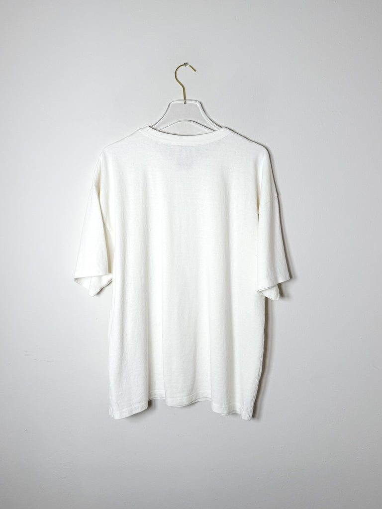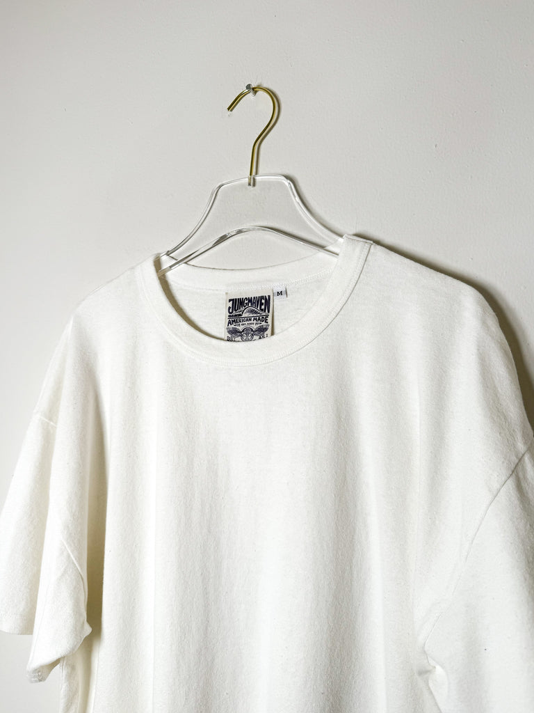 This t-shirt features a relaxed, oversized silhouette with dropped shoulders, crafted from a medium-weight blend of hemp and cotton for comfortable wear.