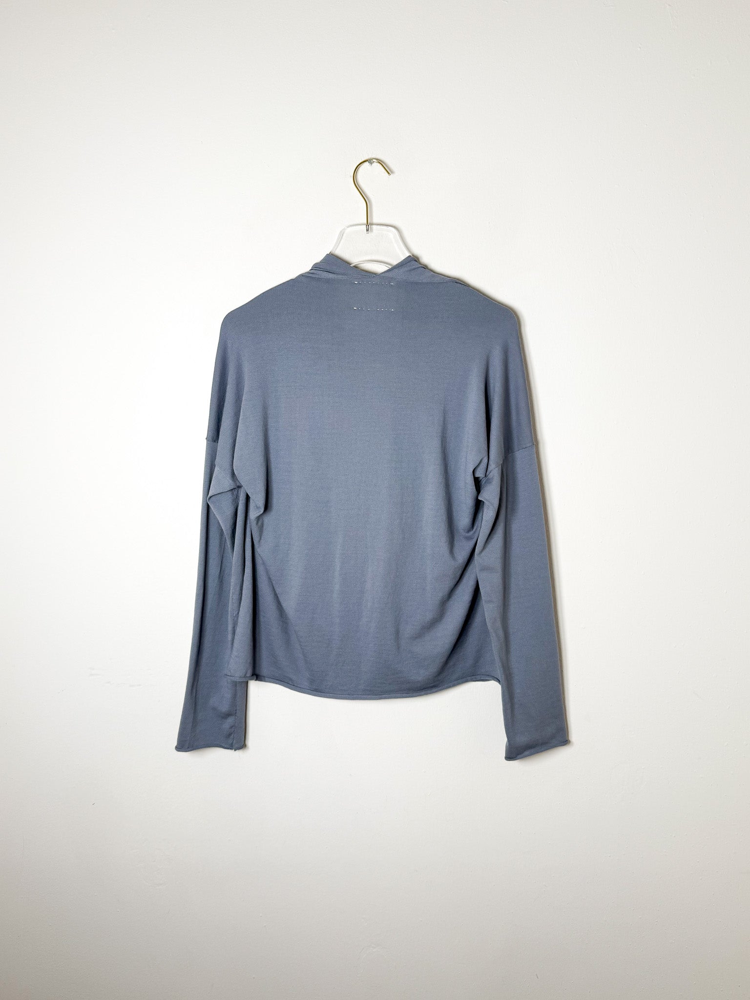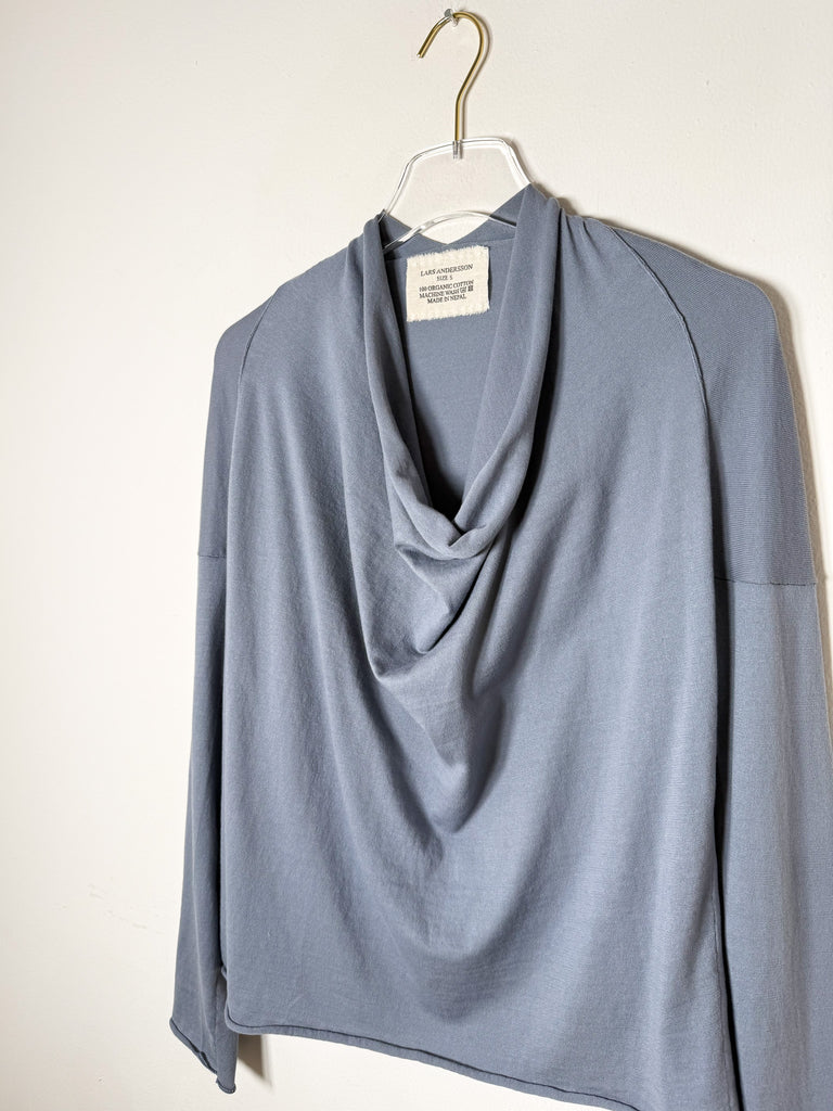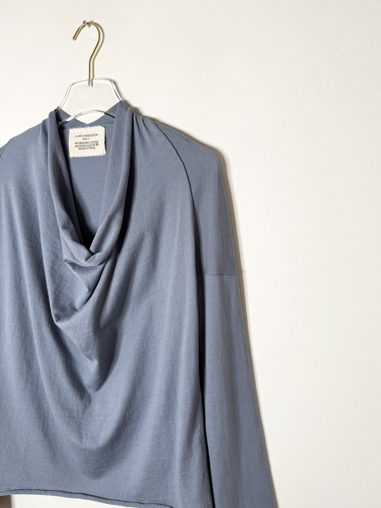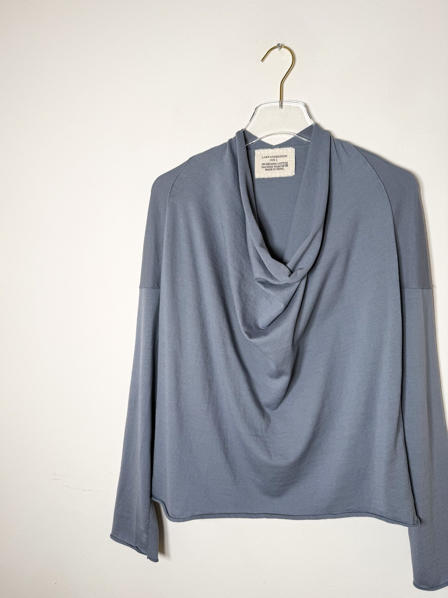 A relaxed long-sleeve top in soft, lightweight cotton knit with a draped neckline.