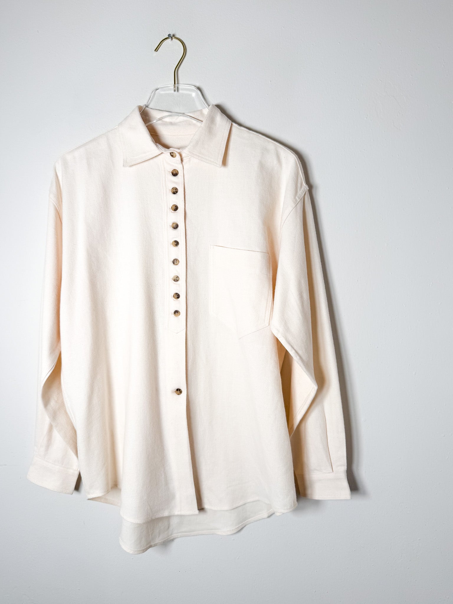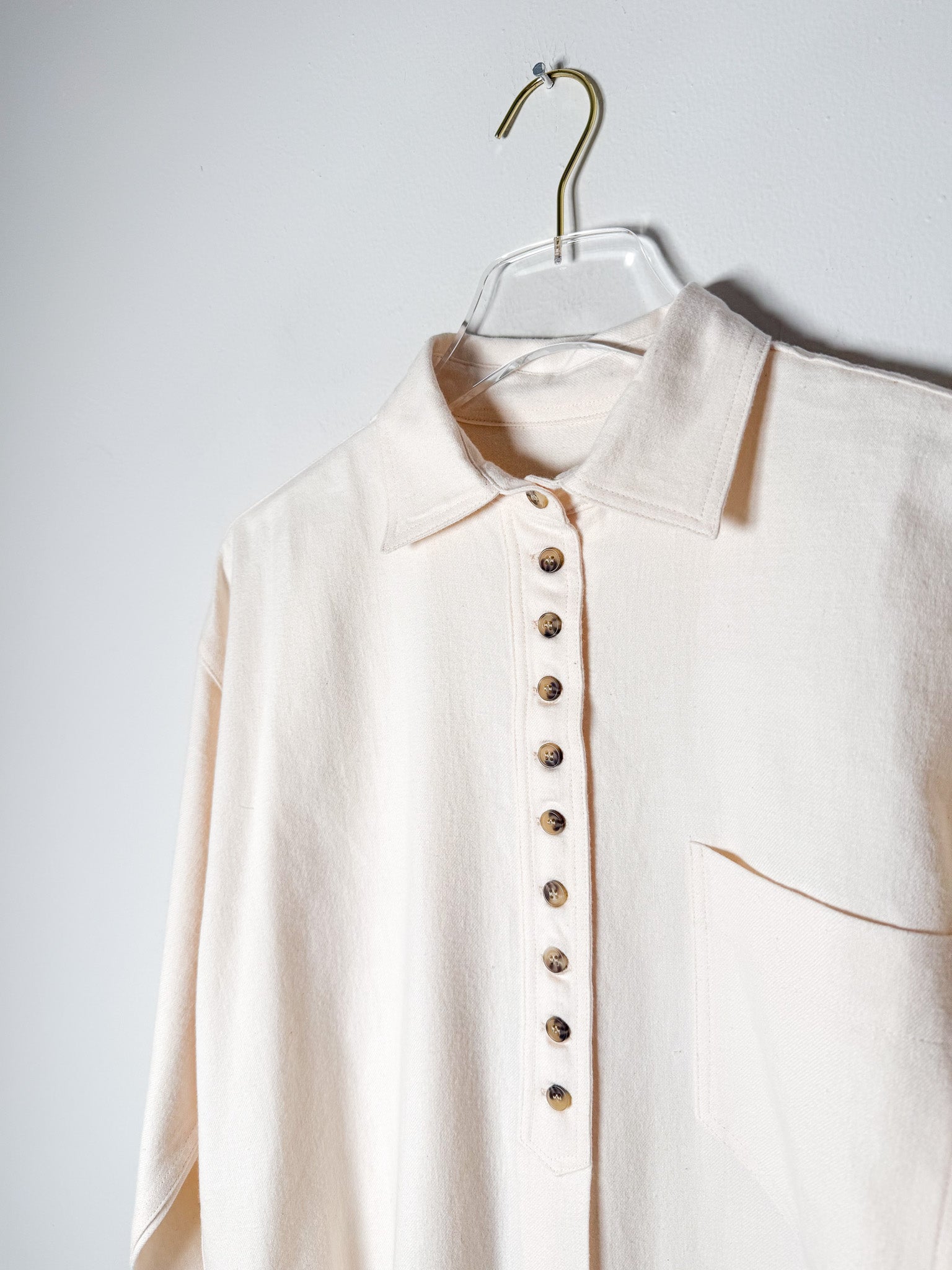 Constructed in Japanese brushed flannel, this oversized shirt combines a soft, touchable surface with an easy, unconfined silhouette. Long button closure and chest pocket deliver quiet, purposeful details.