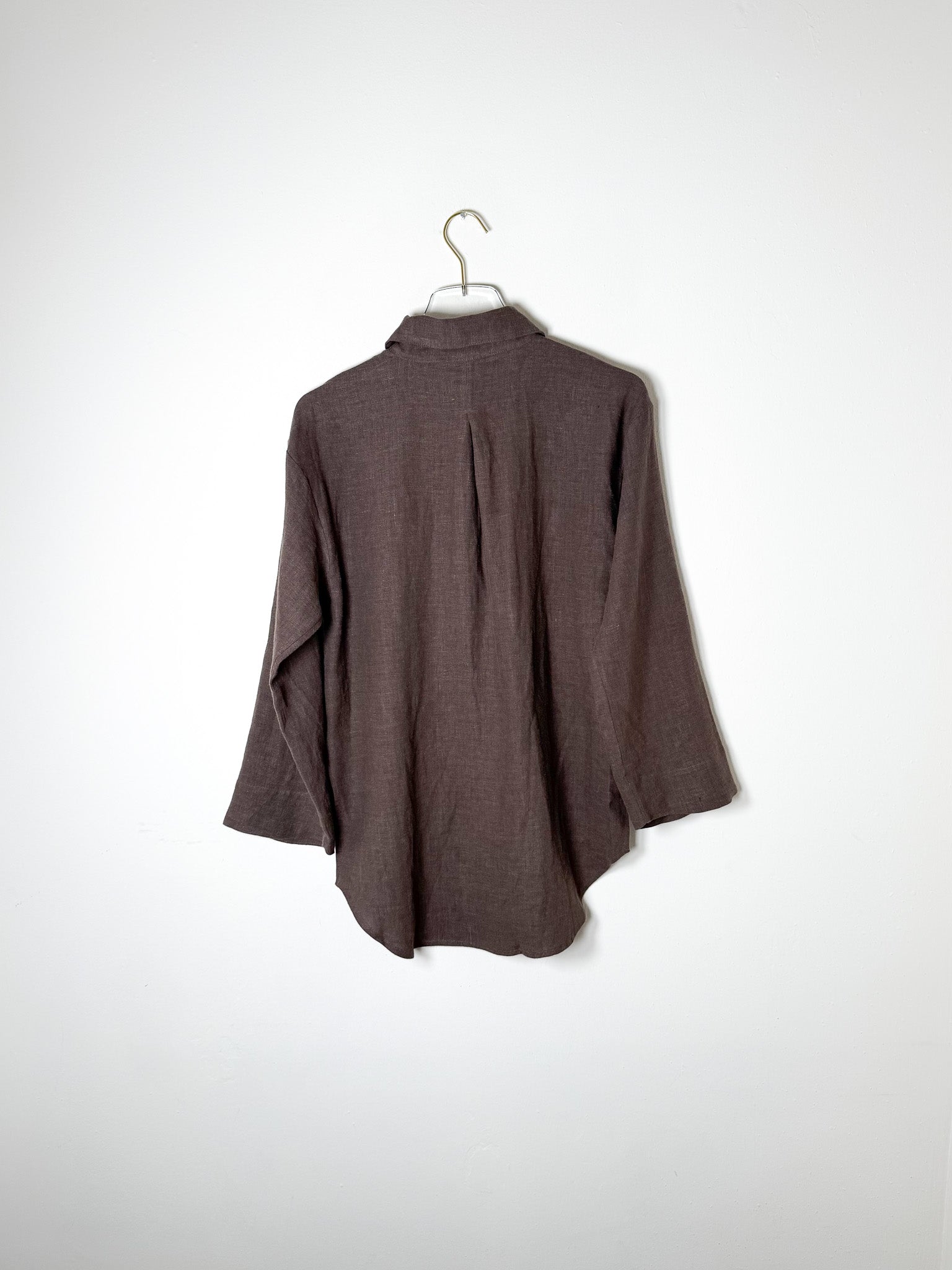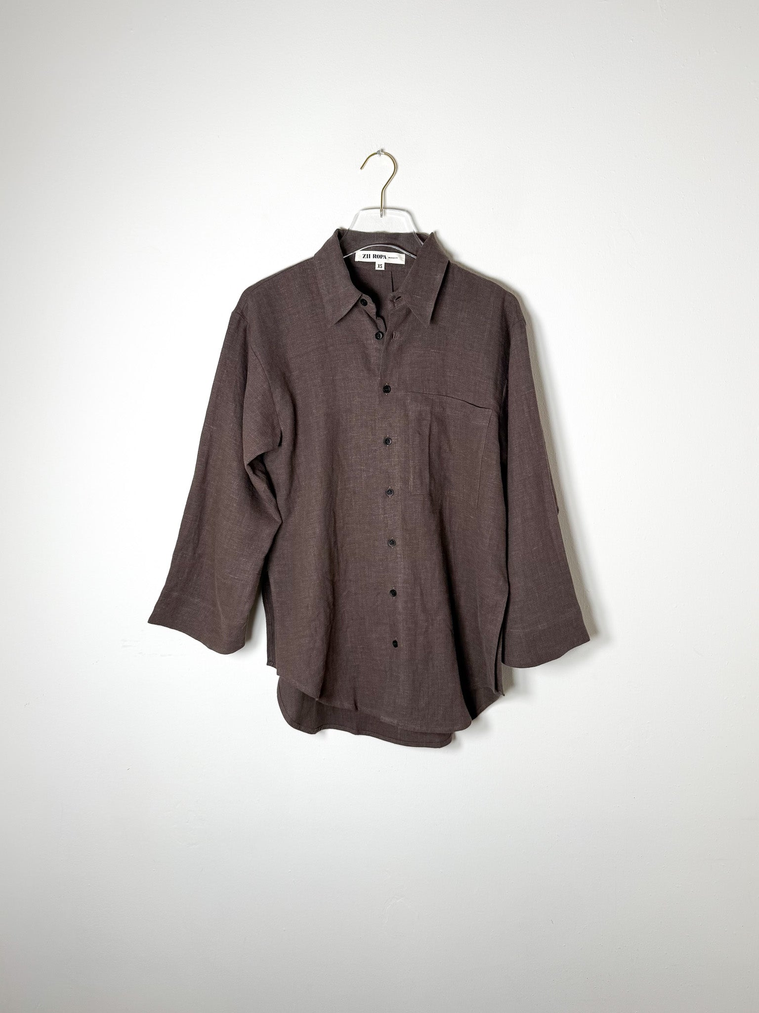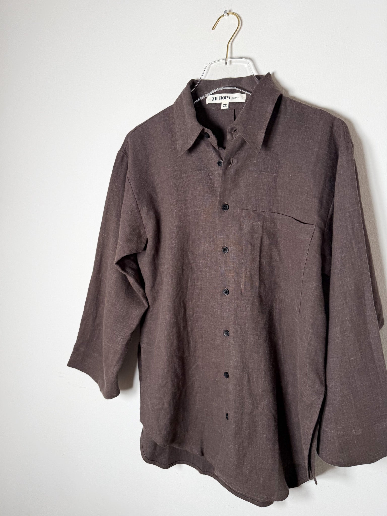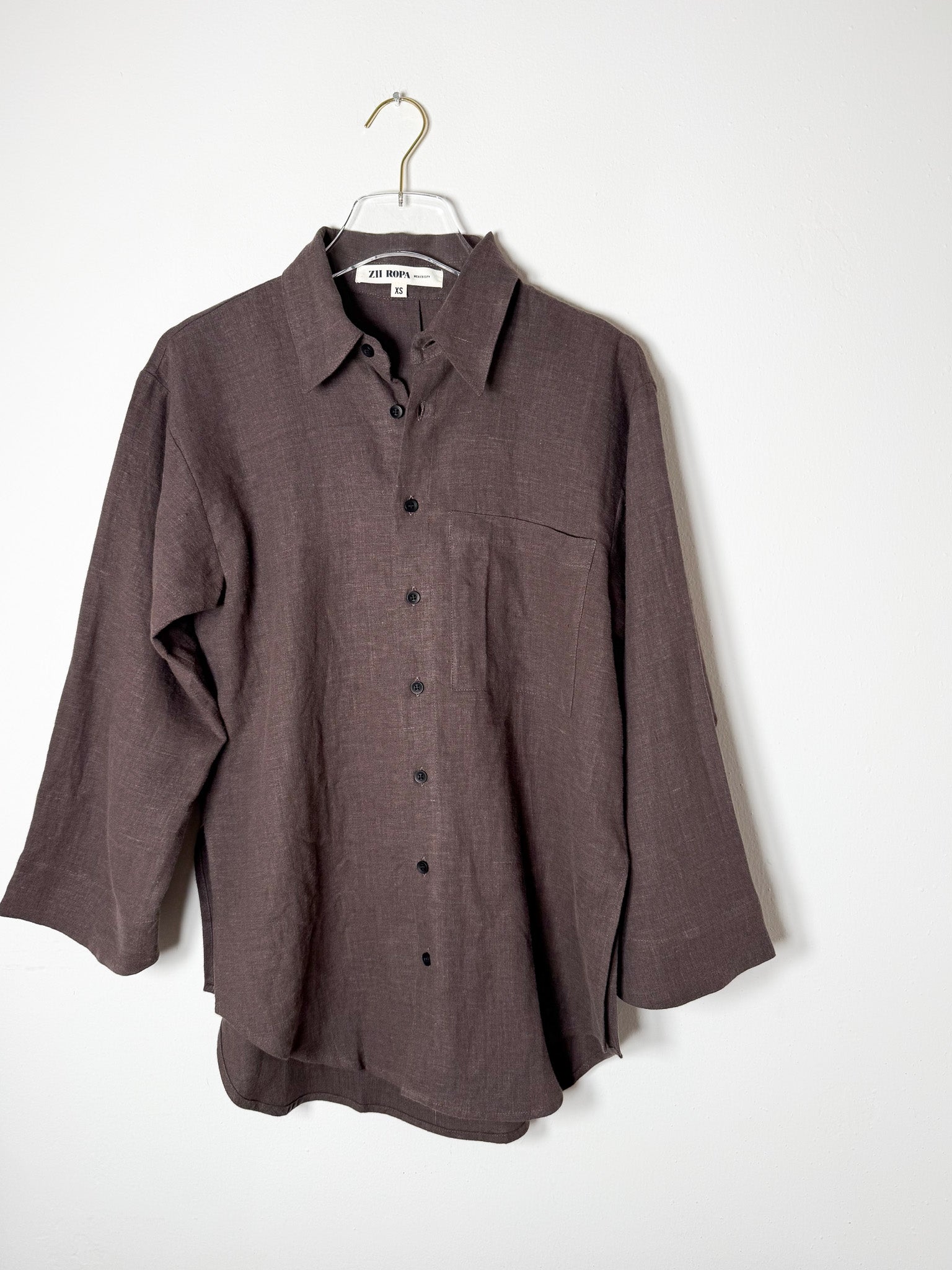 A relaxed button-down with a generous fit, complete with side vents, a functional chest pocket, and cropped flared sleeves for an effortless silhouette.