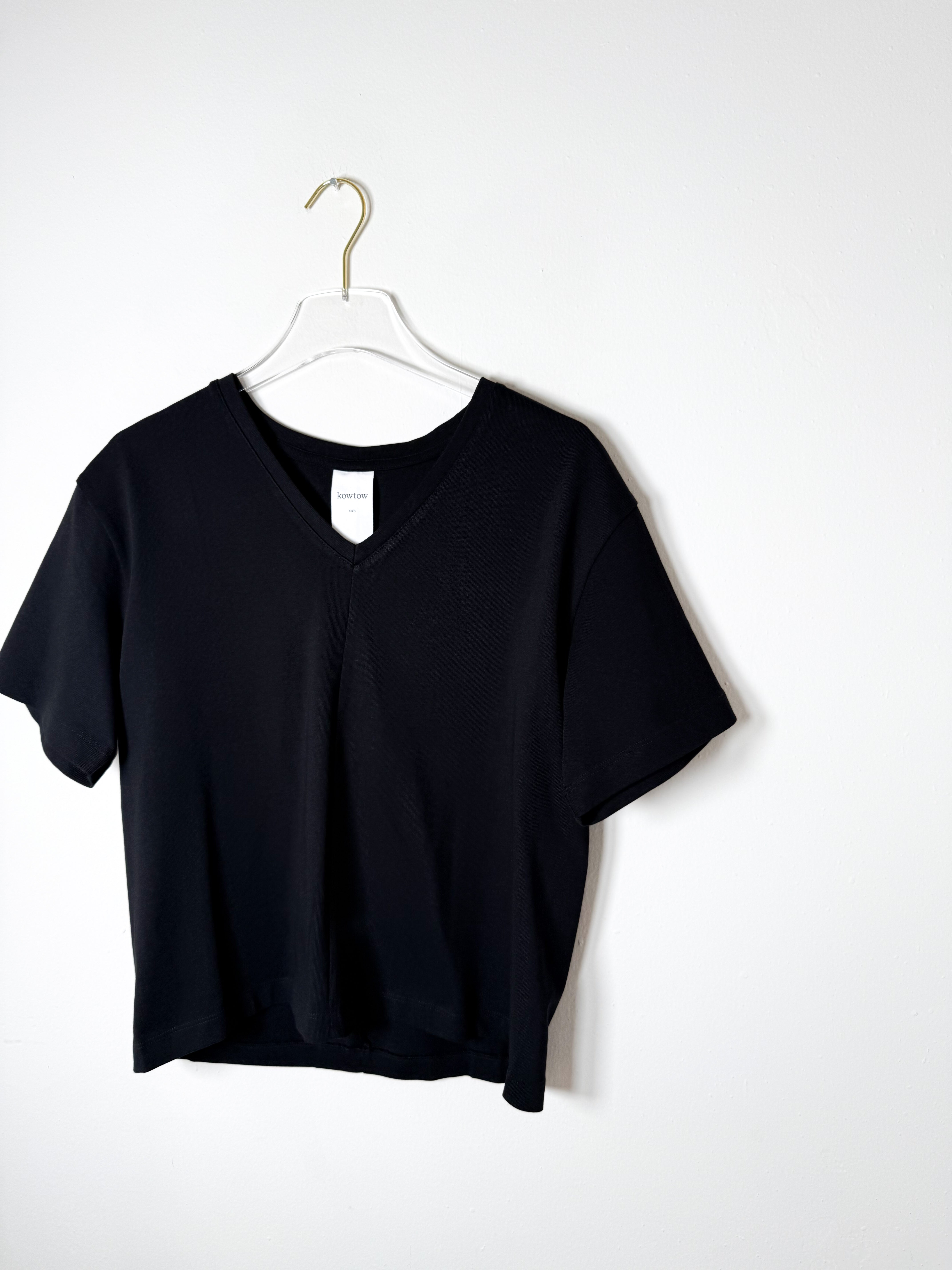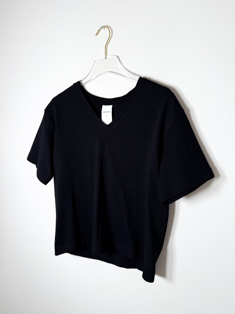 A laid-back v-neck in soft organic cotton with a generous, straight-cut silhouette.