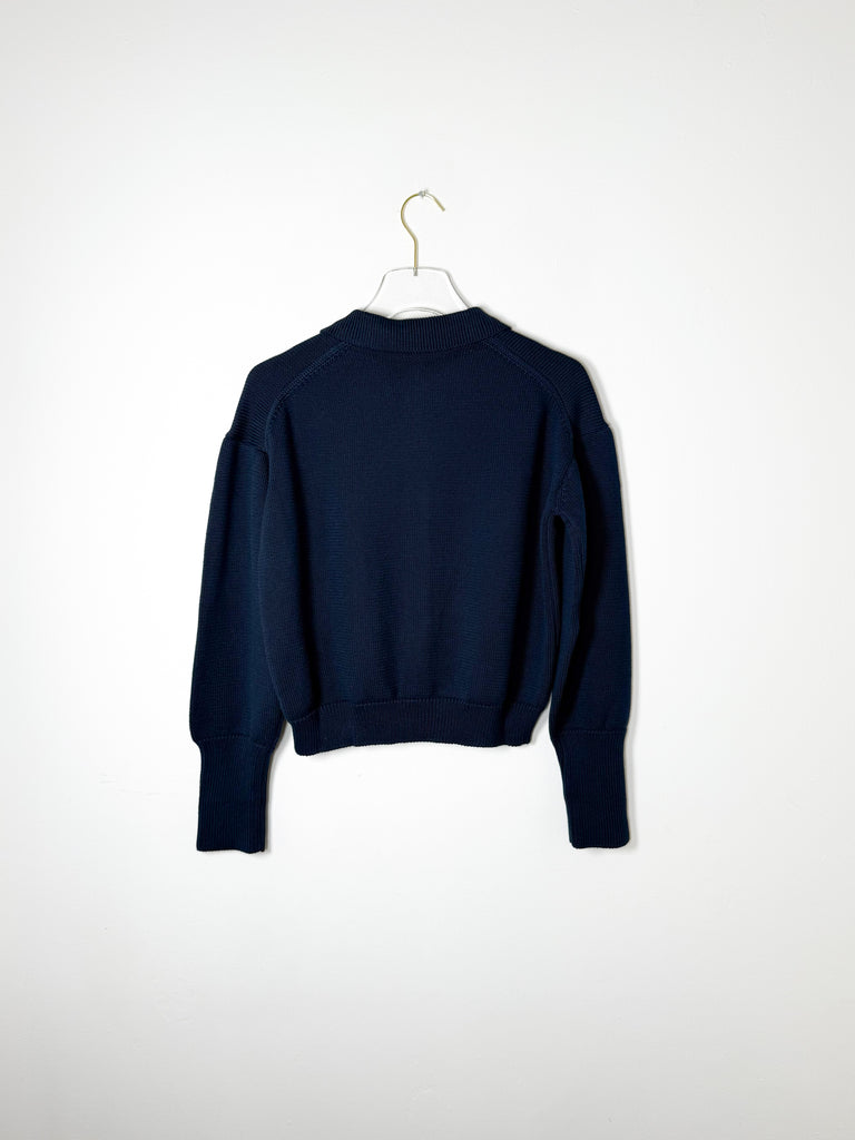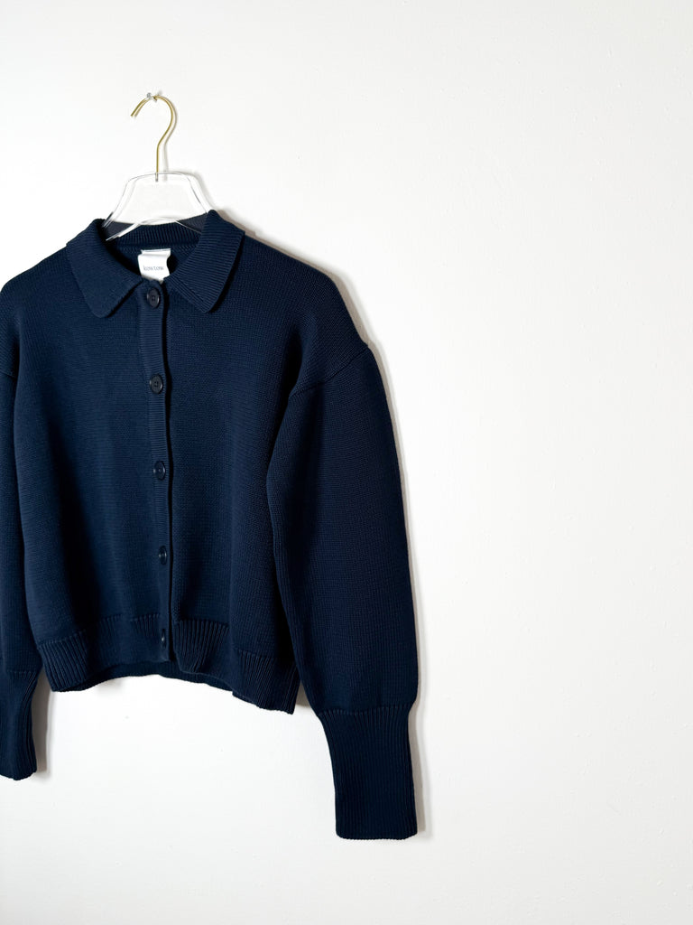 A collared button-up cardigan in medium-weight cotton knit, designed with a relaxed fit that works across seasons.