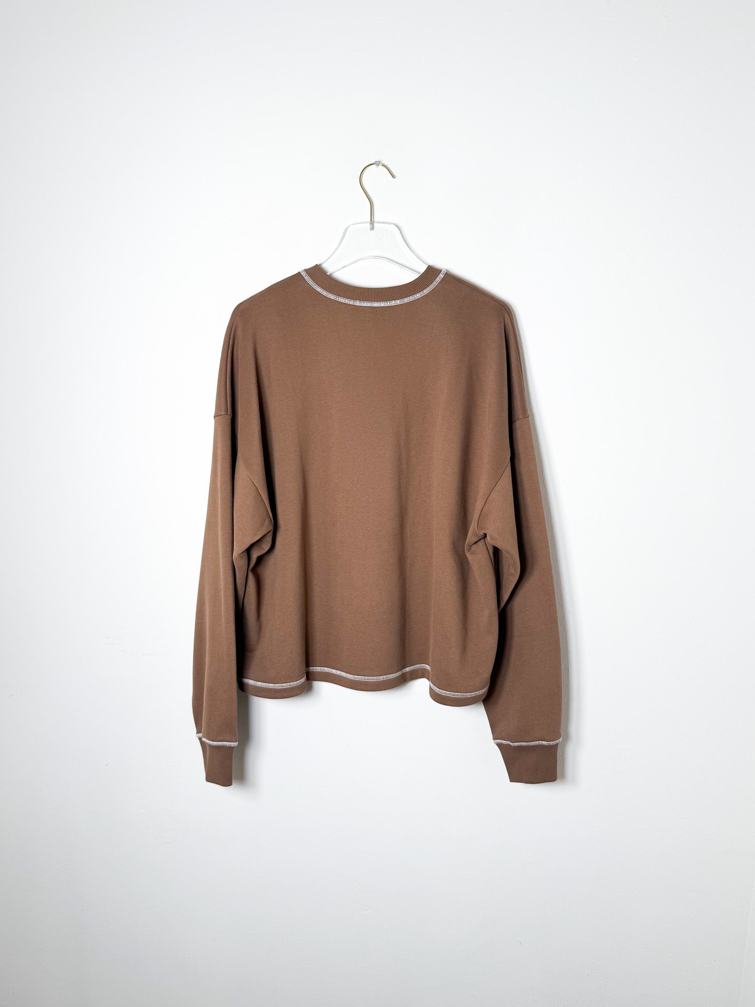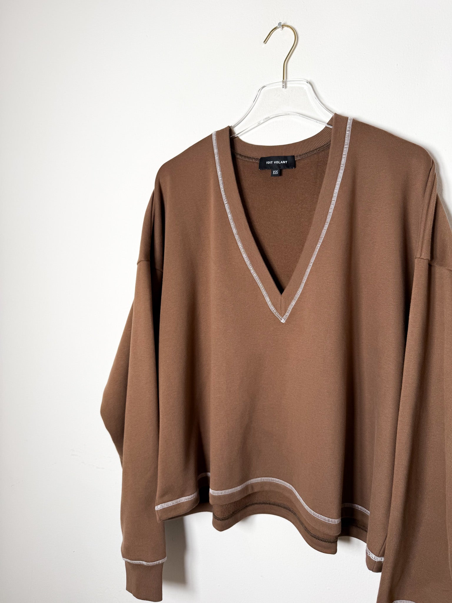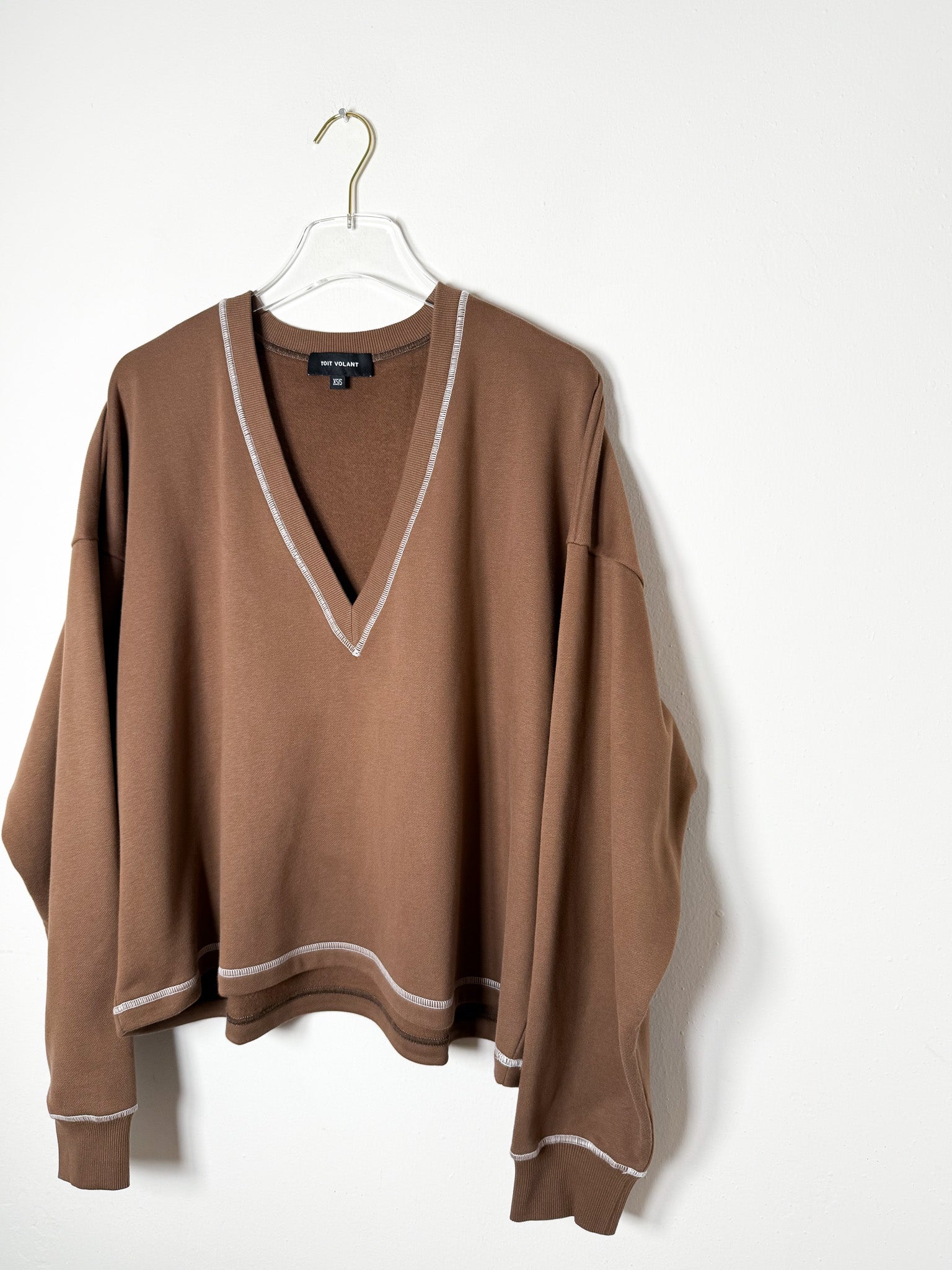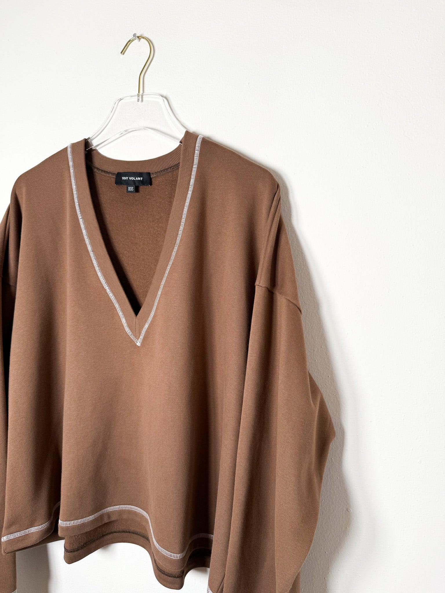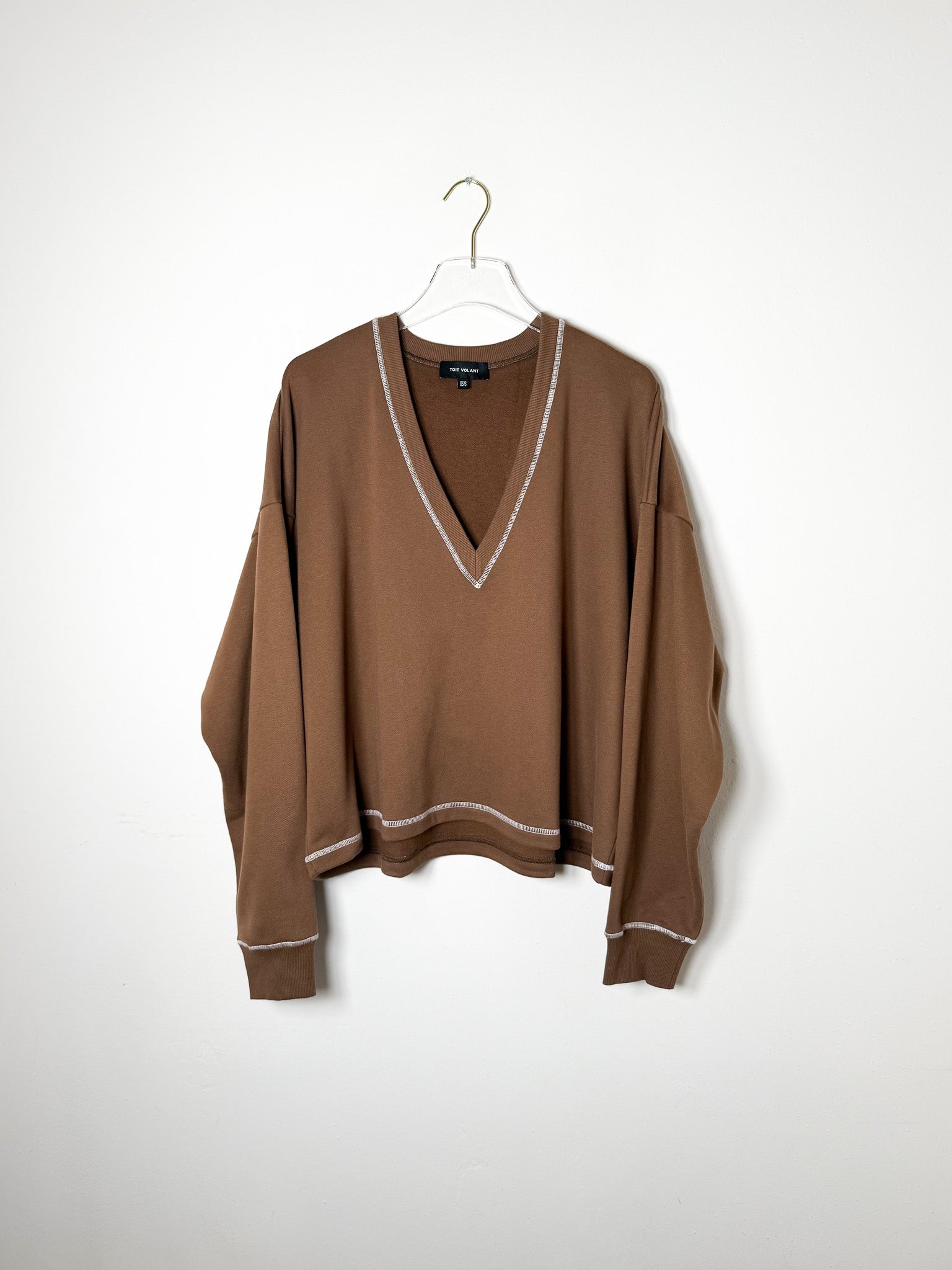Relaxed sweatshirt with a plunging v-neck. Made of a super soft cotton. This style is very oversized.
