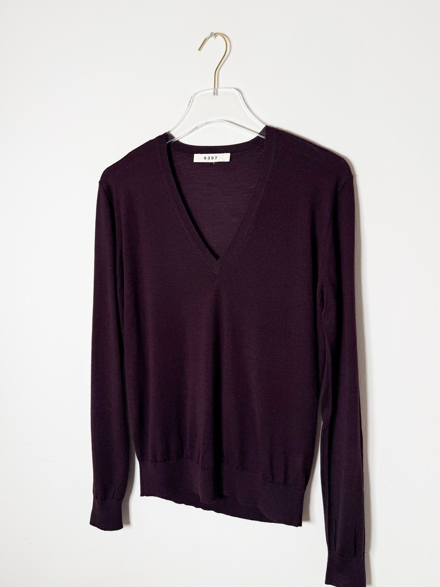 This classic 6397 V-neck sweater features a gently relaxed fit, making it versatile to wear alone or layered. A timeless essential for any wardrobe.