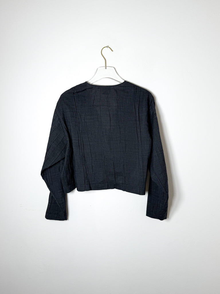 This cropped V-neck blouse is crafted from textured fabric and designed with a relaxed, boxy shape for a modern, casual vibe.