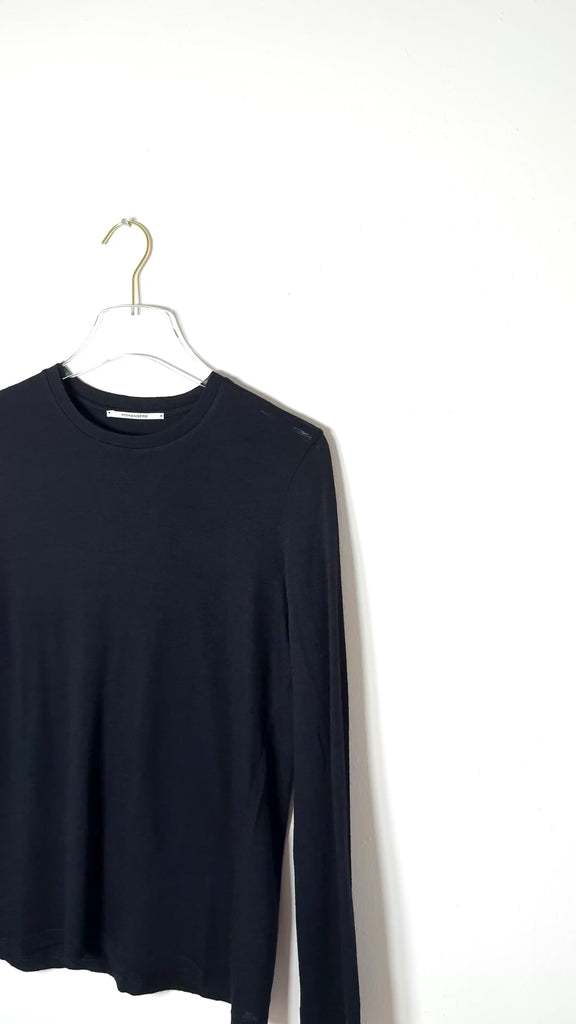 This timeless long-sleeve tee features a crewneck design crafted from soft wool jersey, combining comfort with understated style.