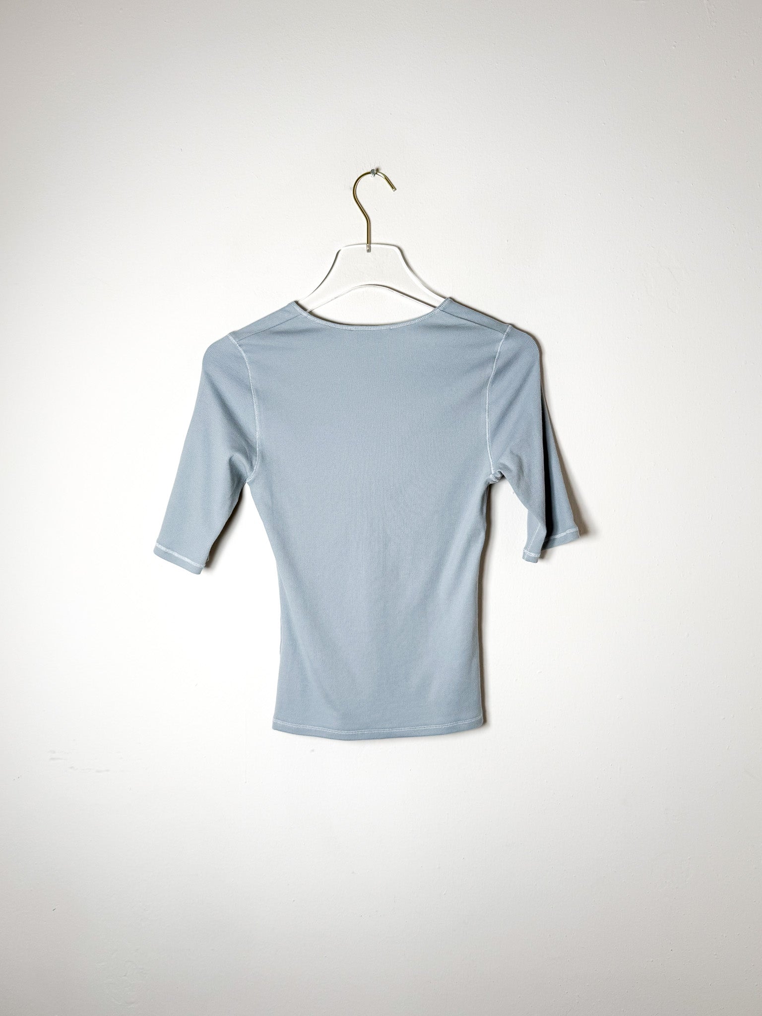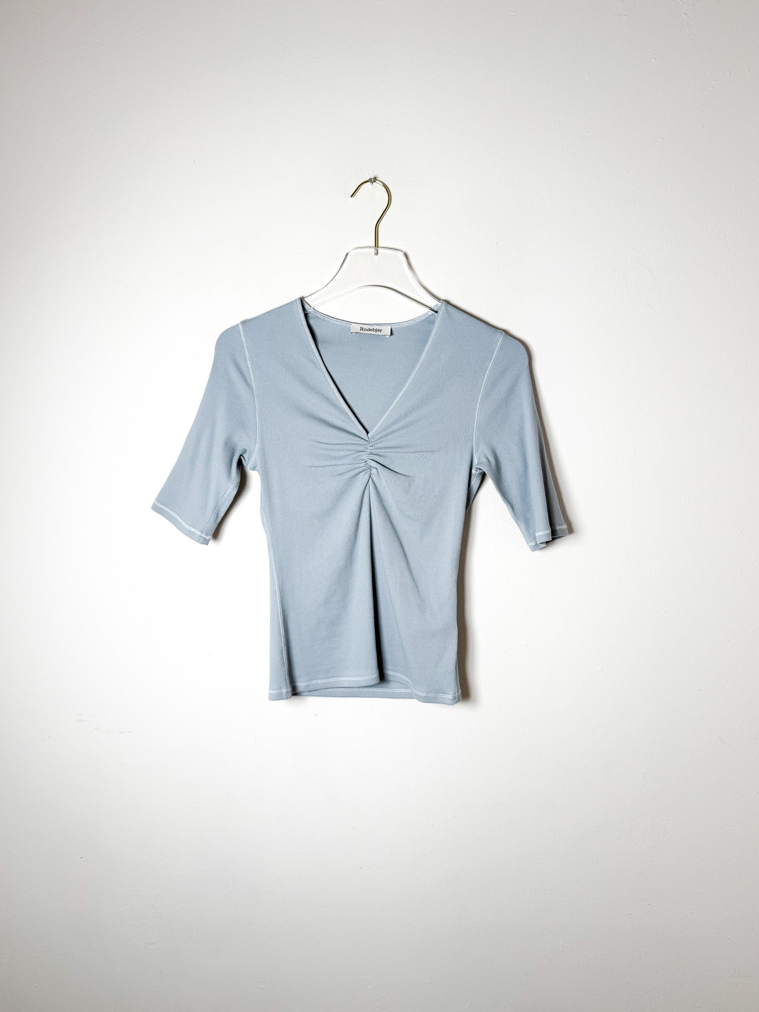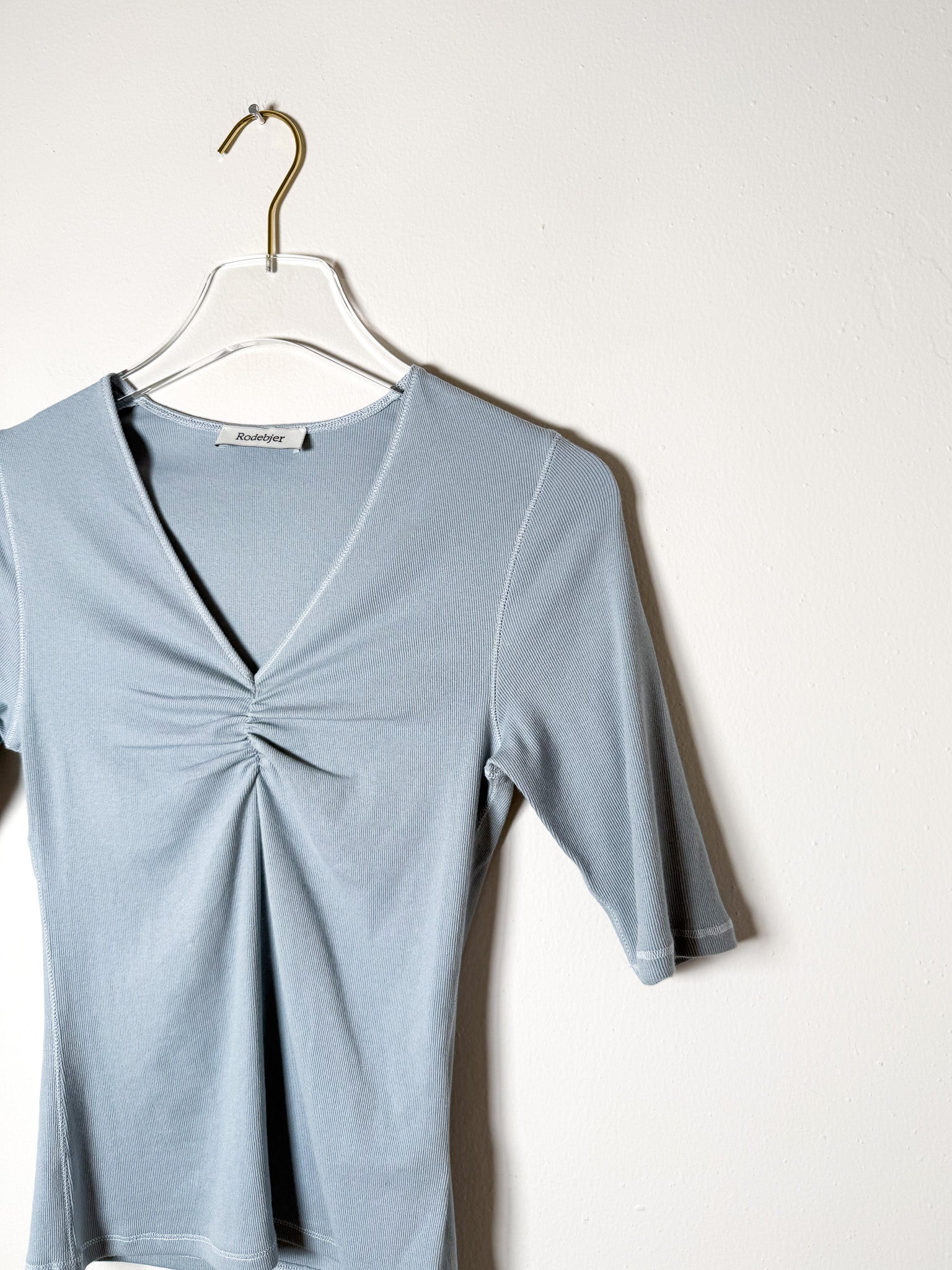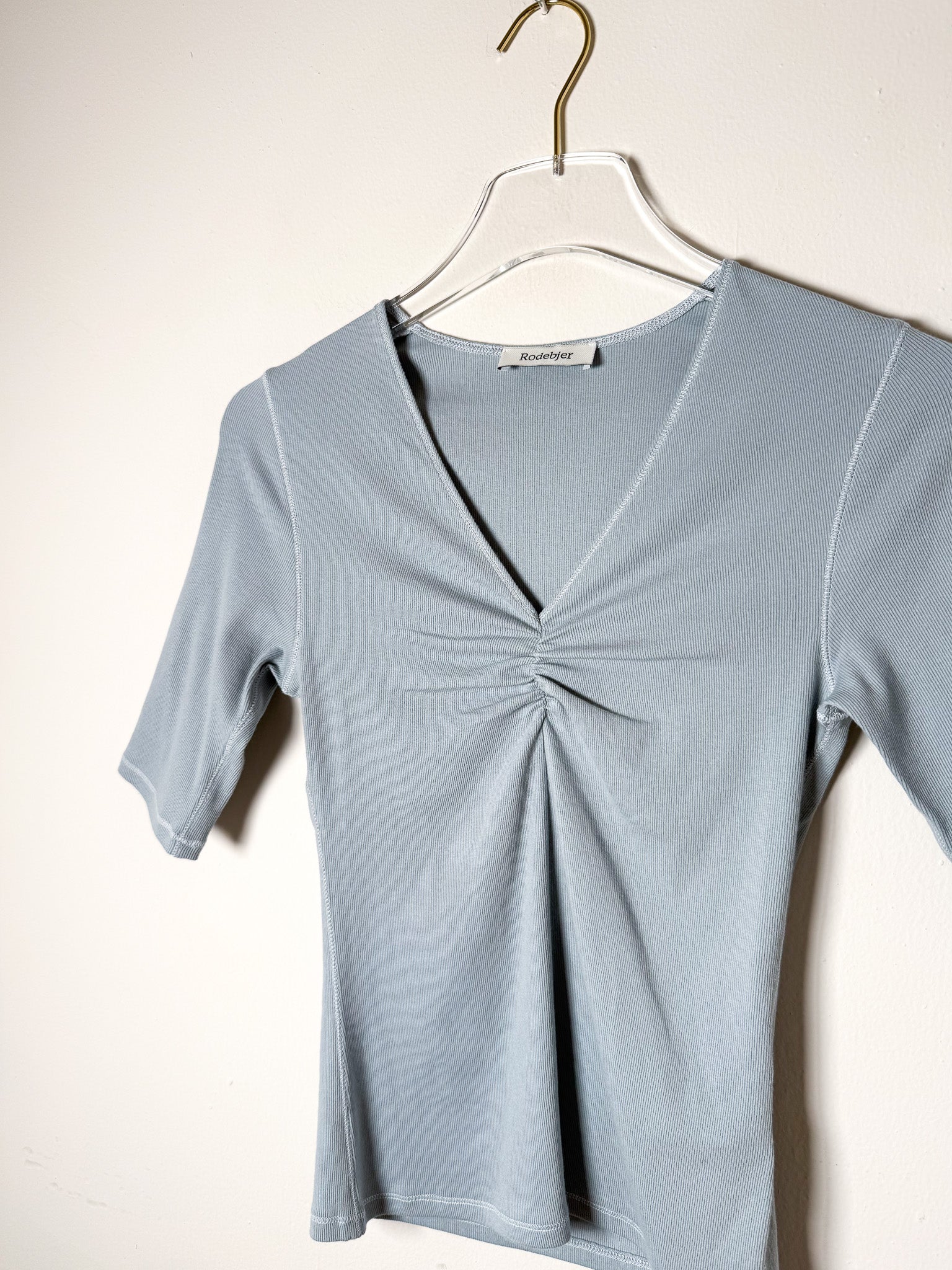 Short sleeve, fitted v-neck top in ribbed cotton.