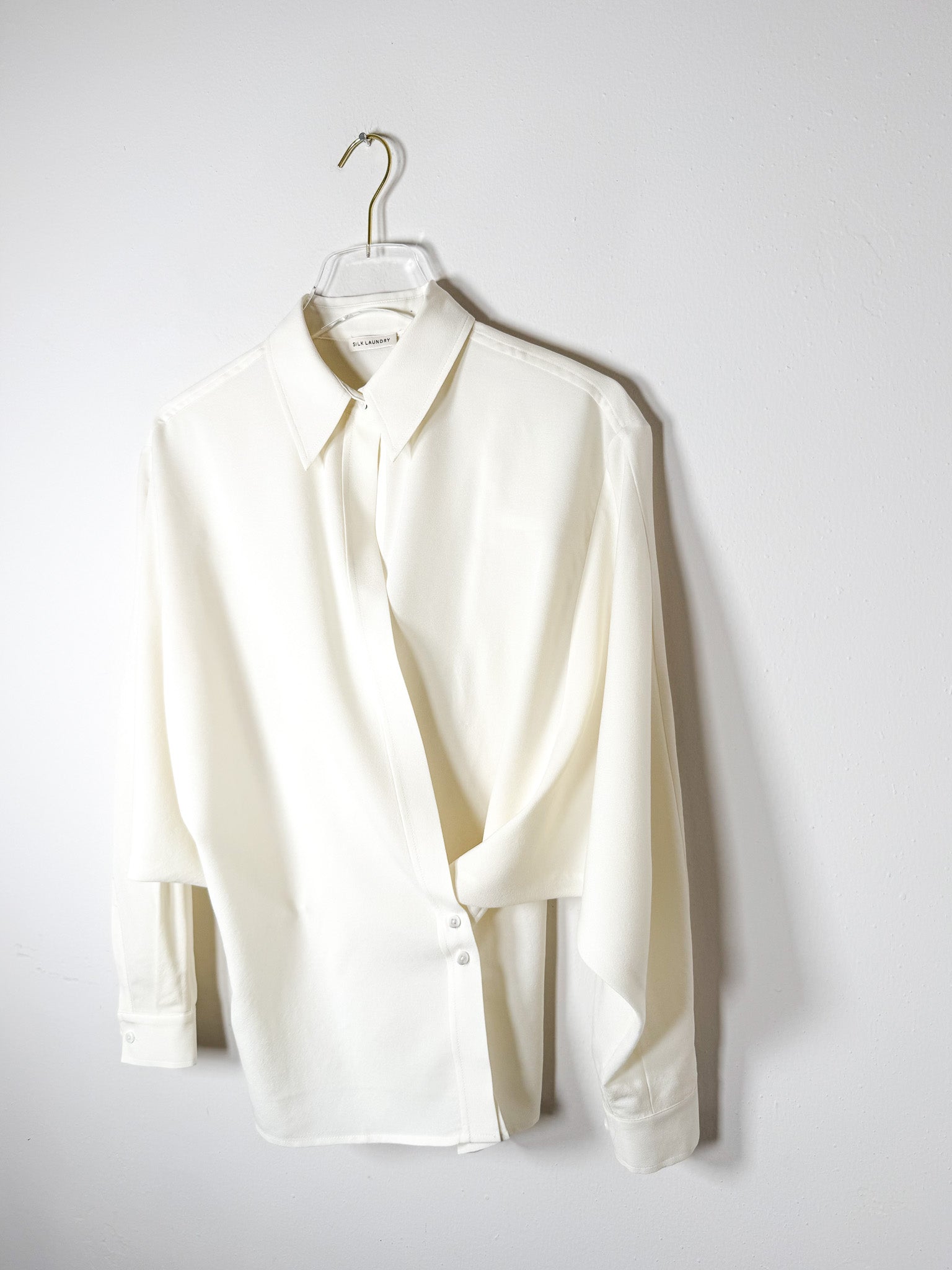 Silk Laundry - Wool Silk Cross Over Shirt - Off White